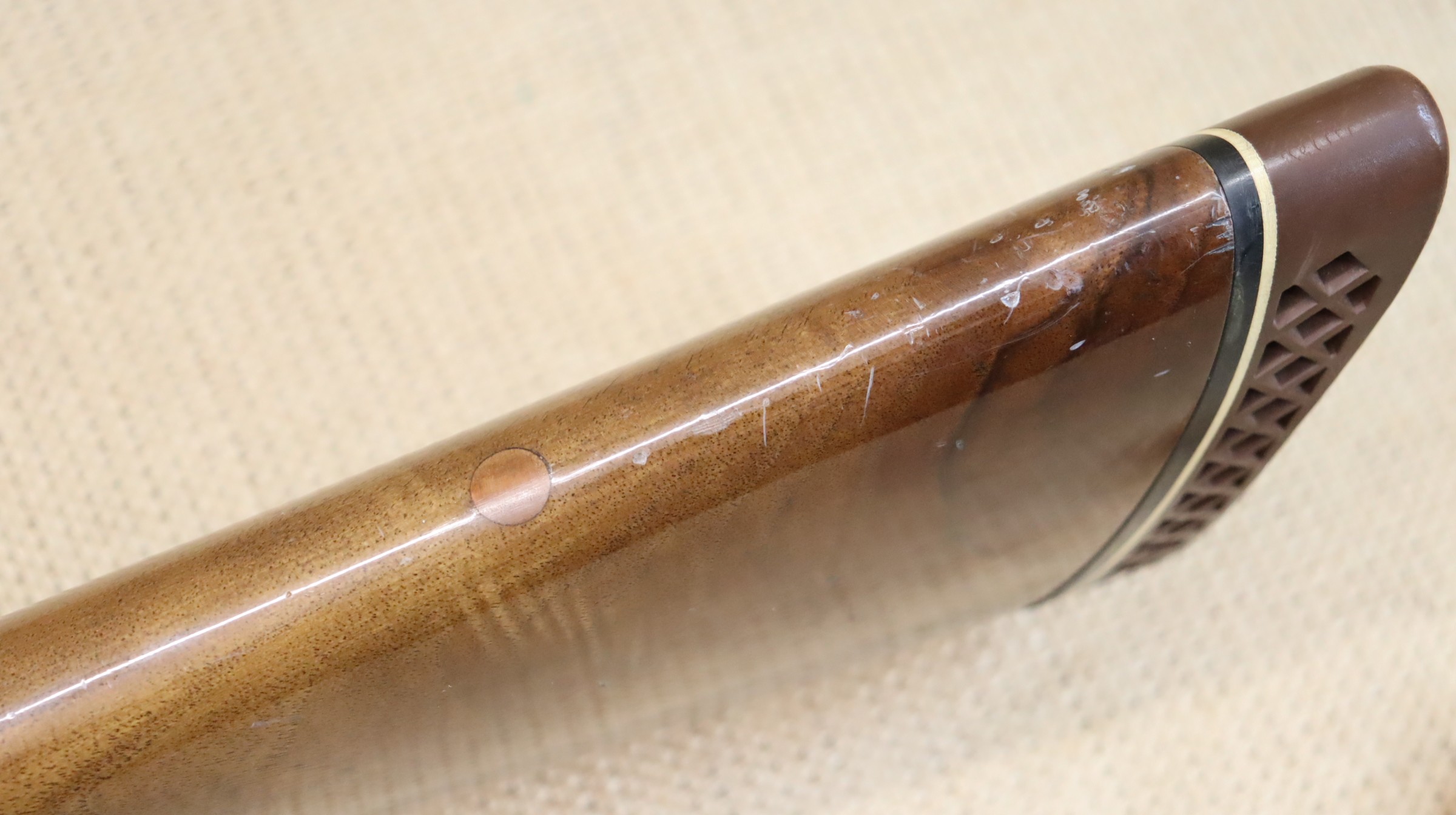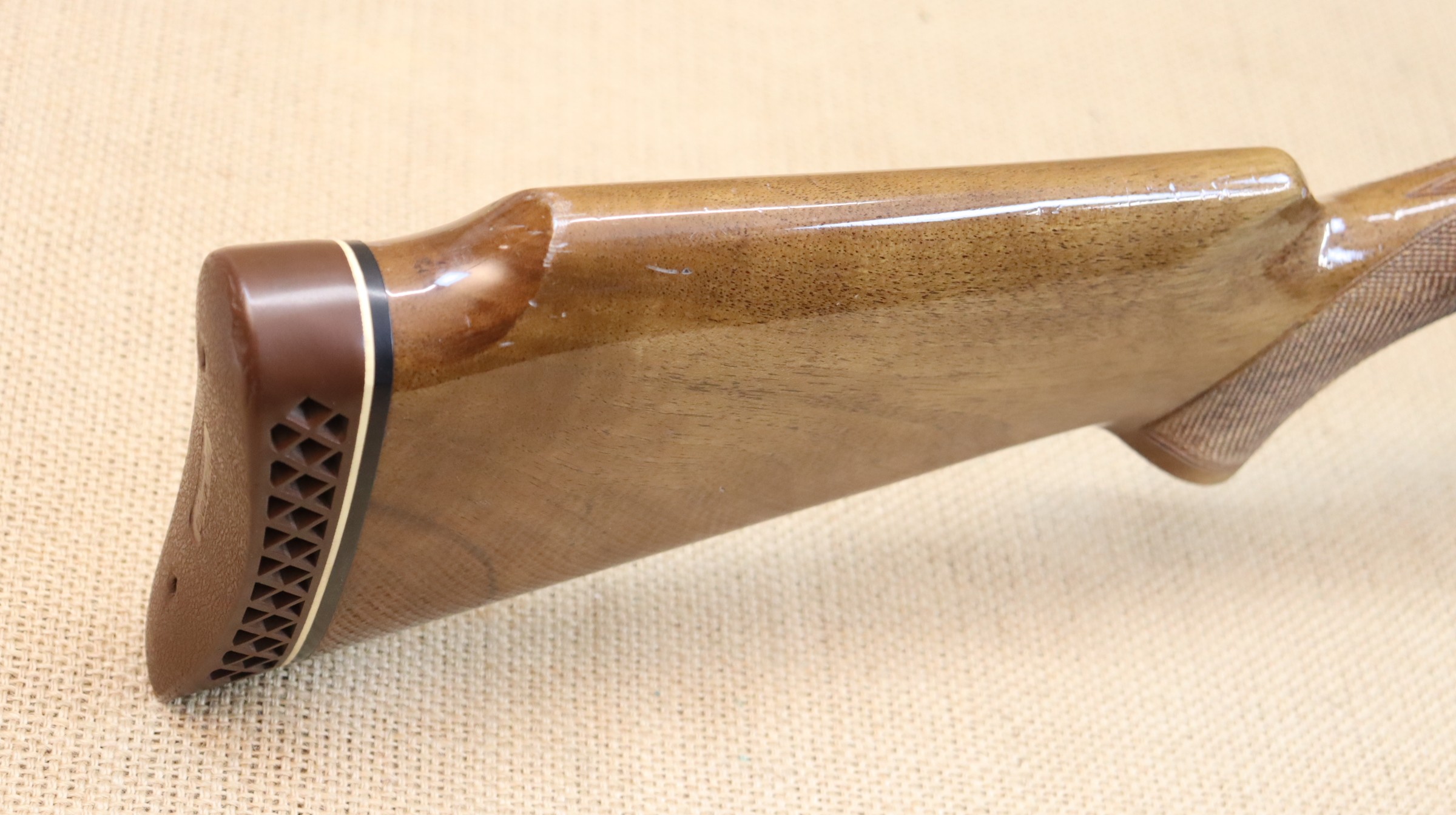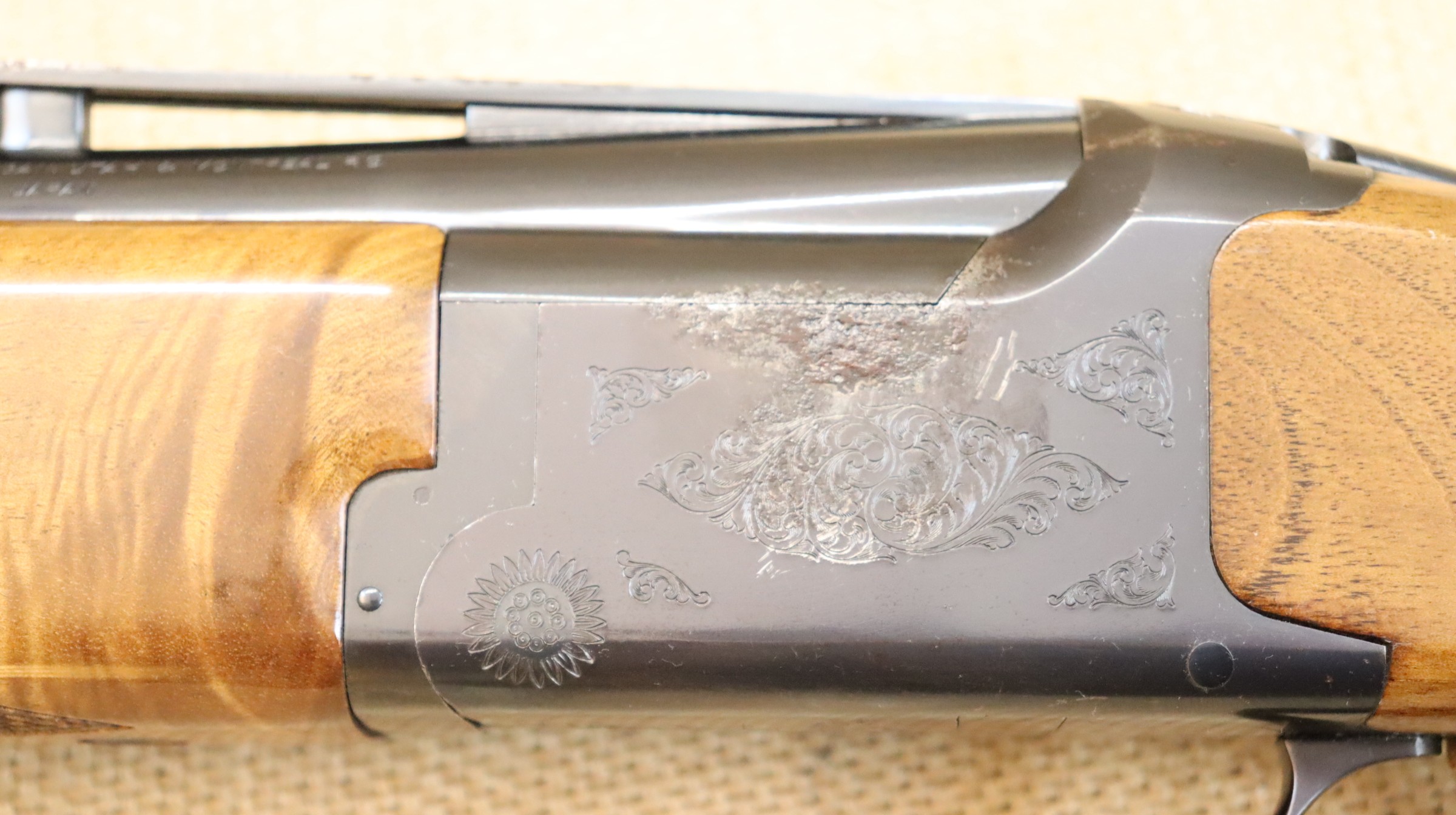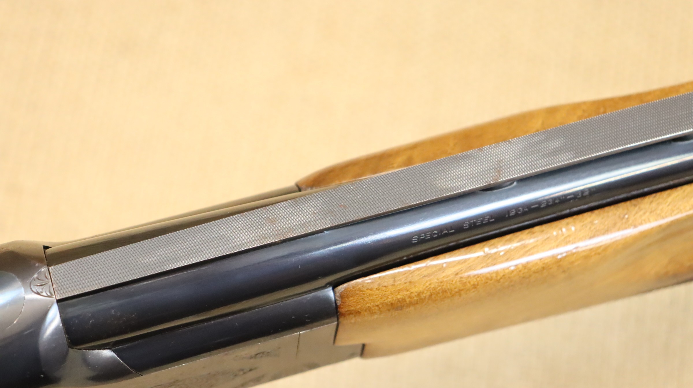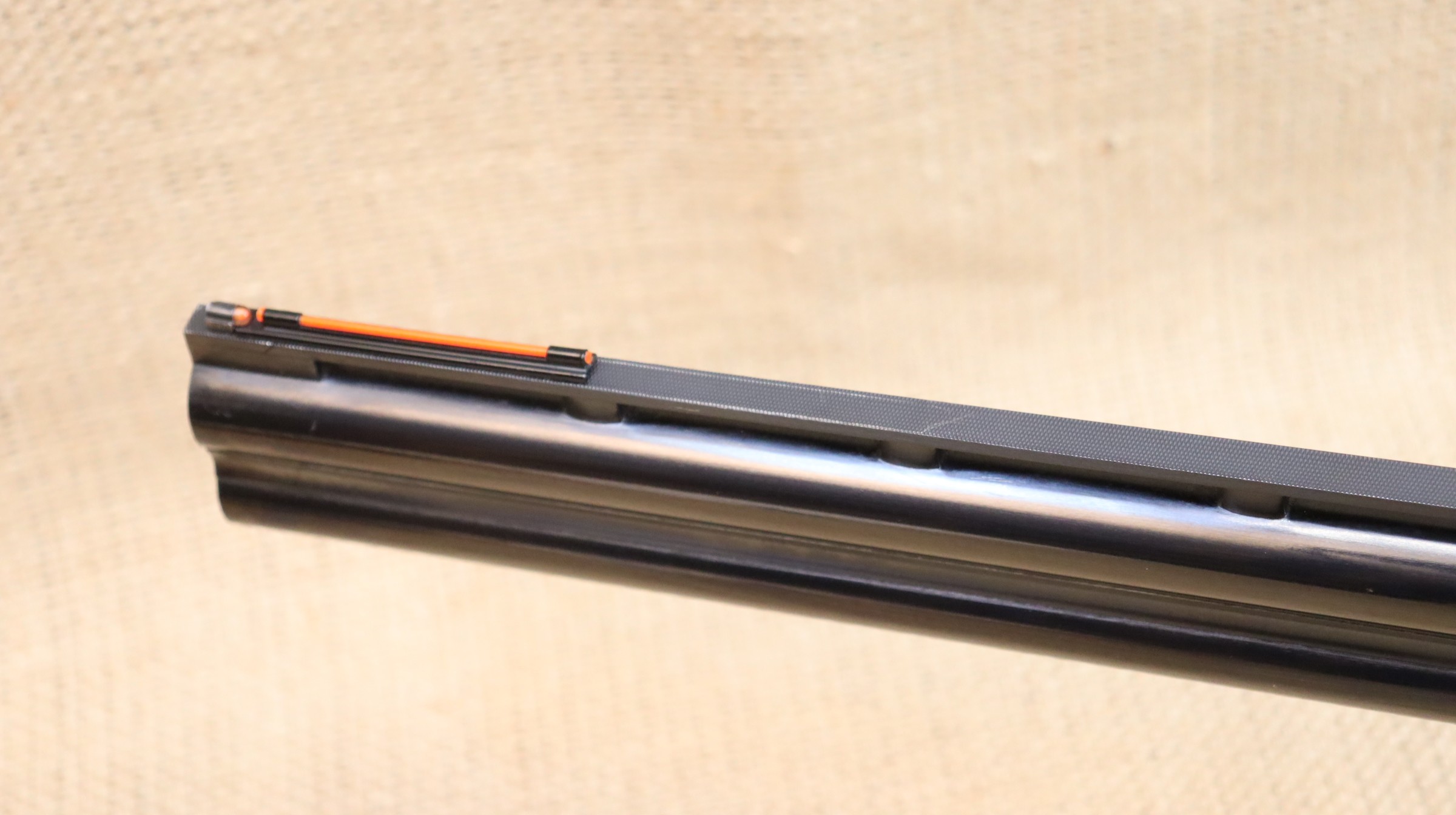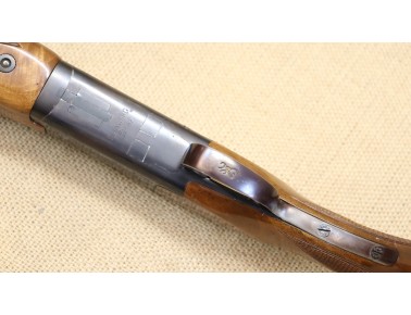 Sportflinte mit einer Lauflänge von 81 cm, Hinterschaft-Länge ca. 36 cm. Leider hat die Brünierung am Sytemkasten einen Rostschaden, ansonsten guter gebrauchter Zustand.