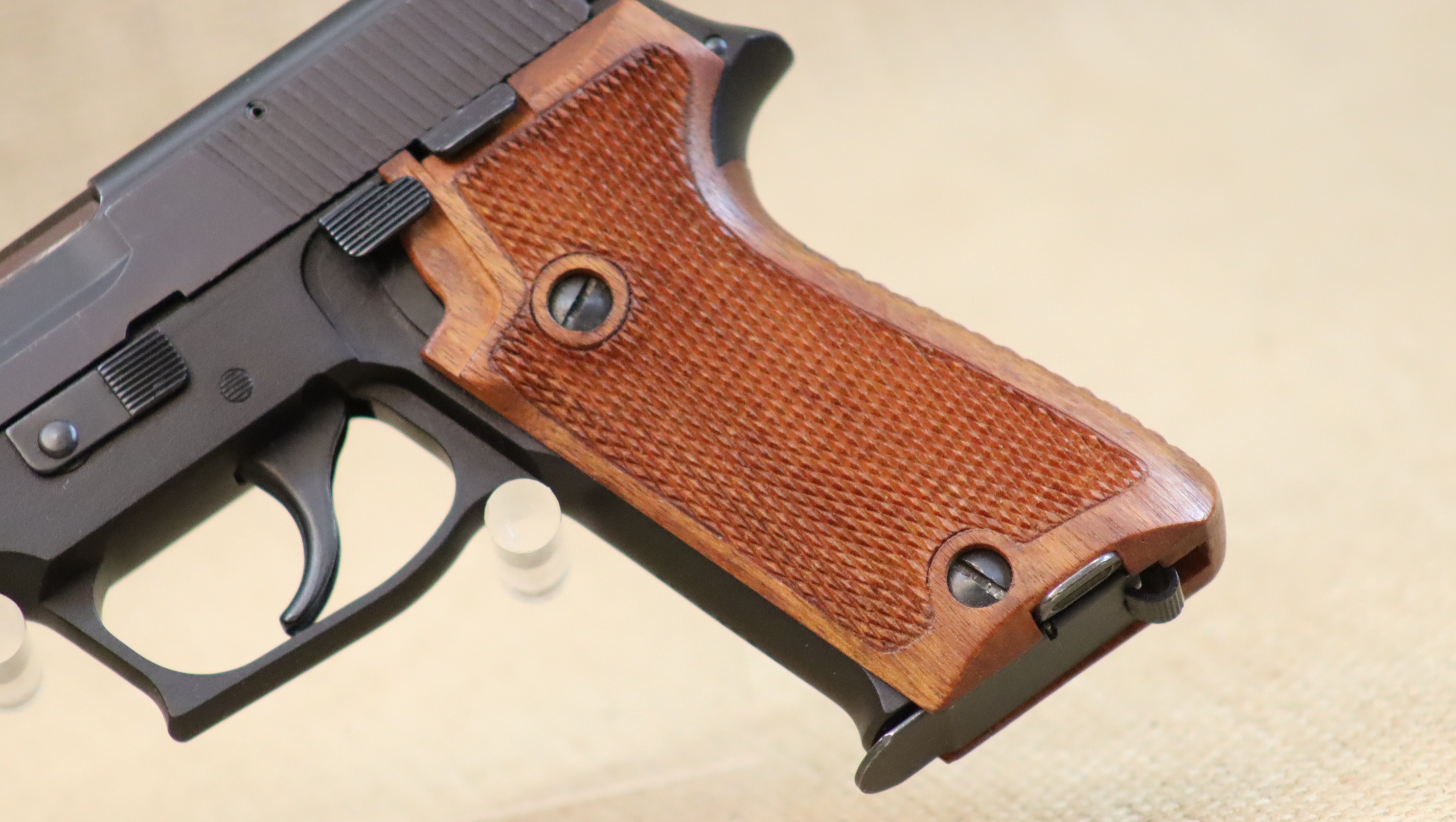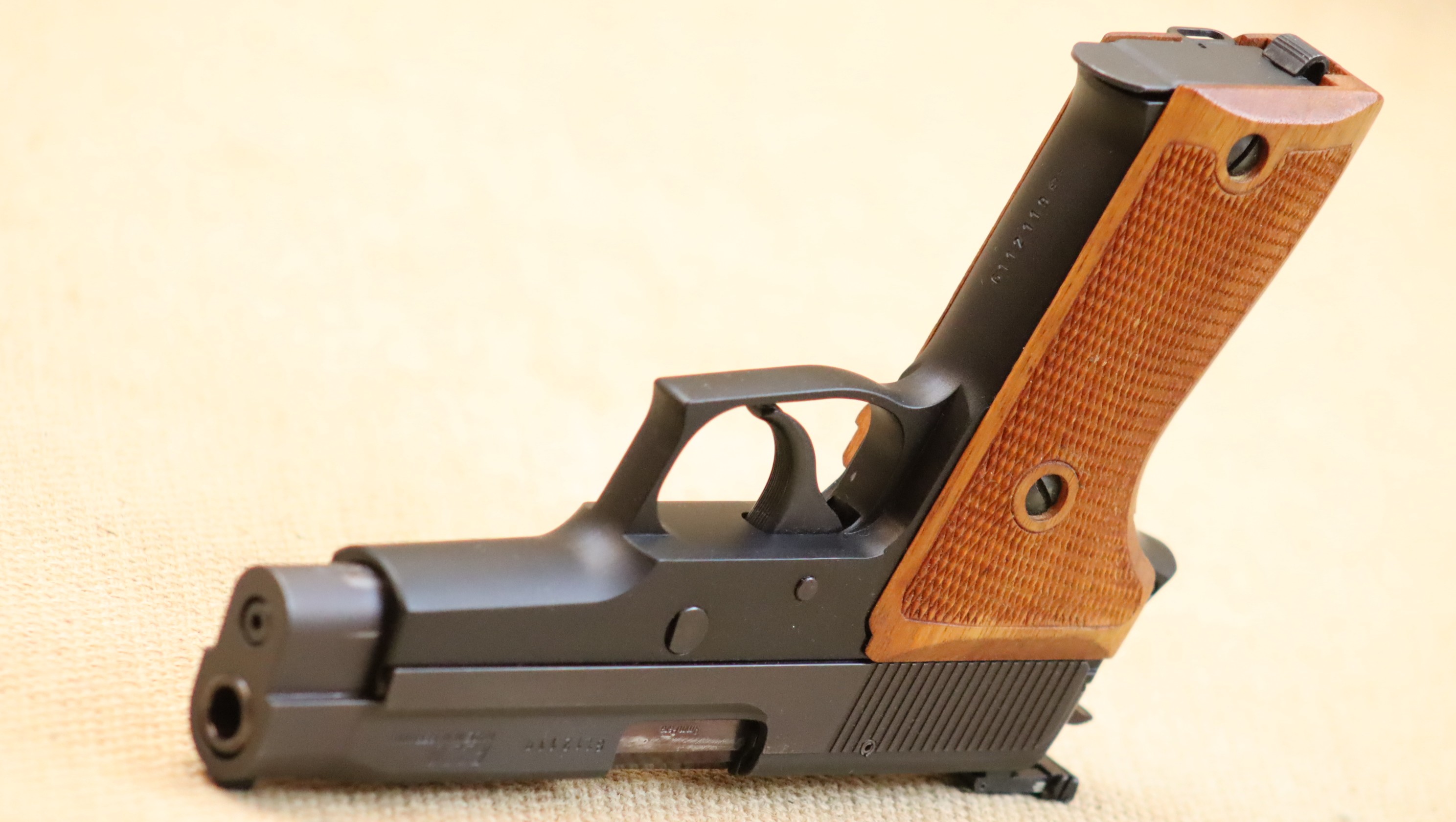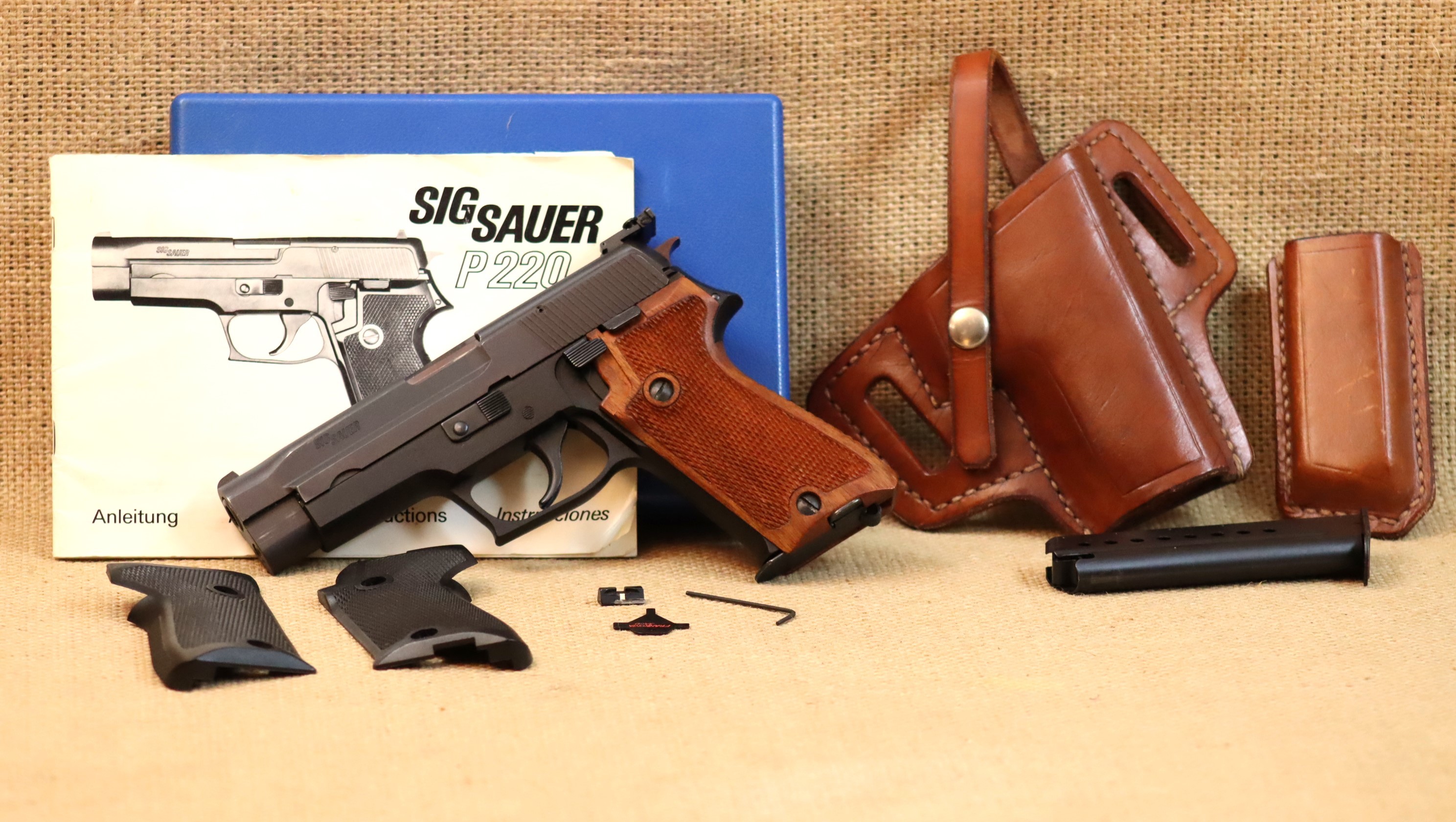 Sehr guter Zustand, inkl. original Schachtel, Griffschalen, Kimme, Bedienanleitung, Ersatzmagazin, Holster und Magazintasche.