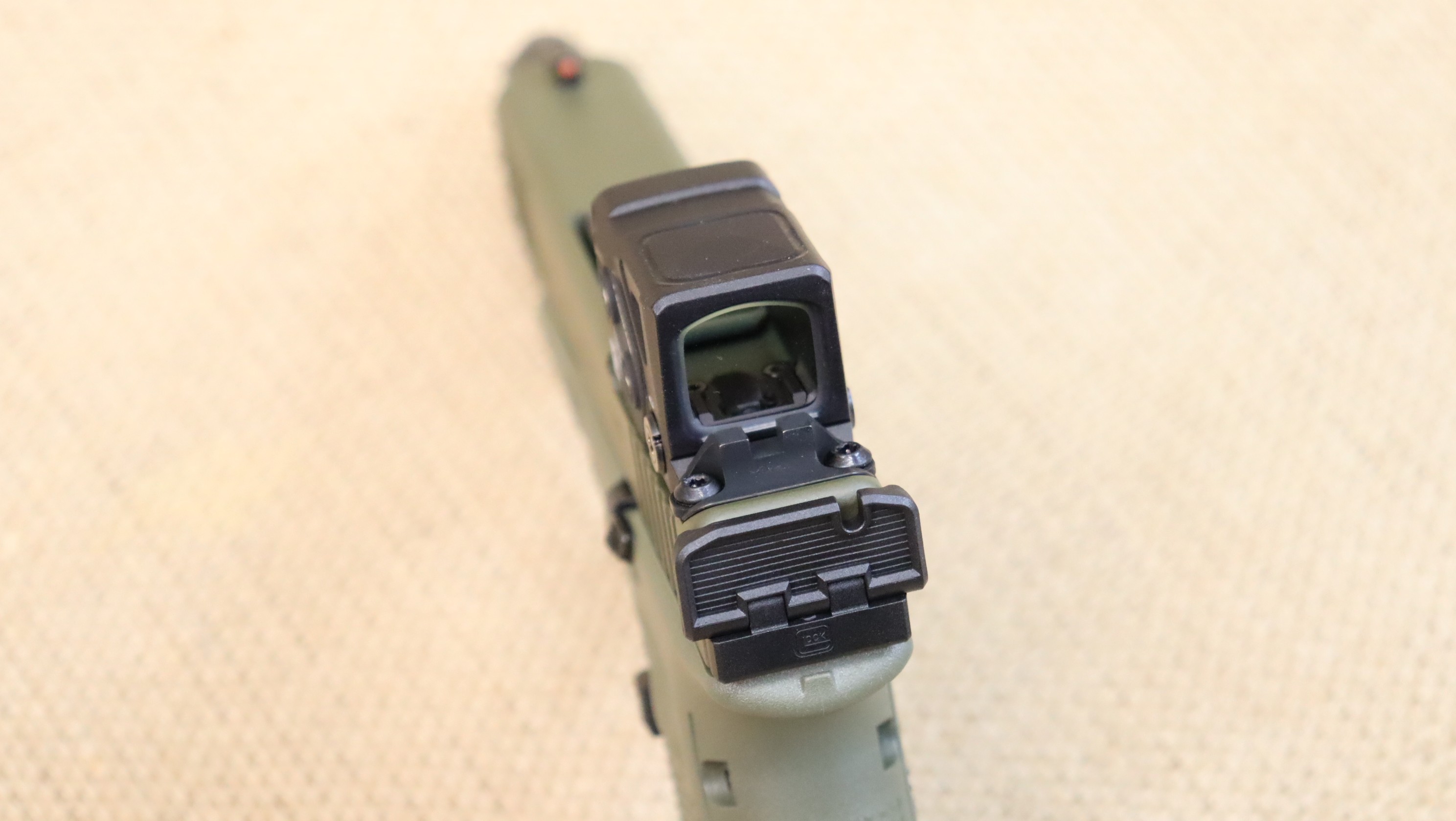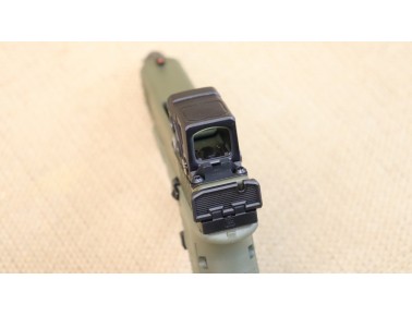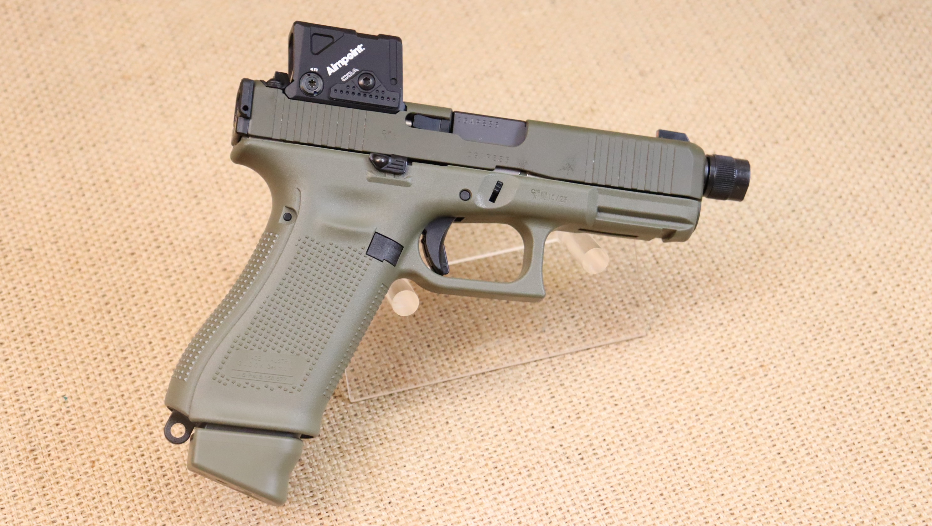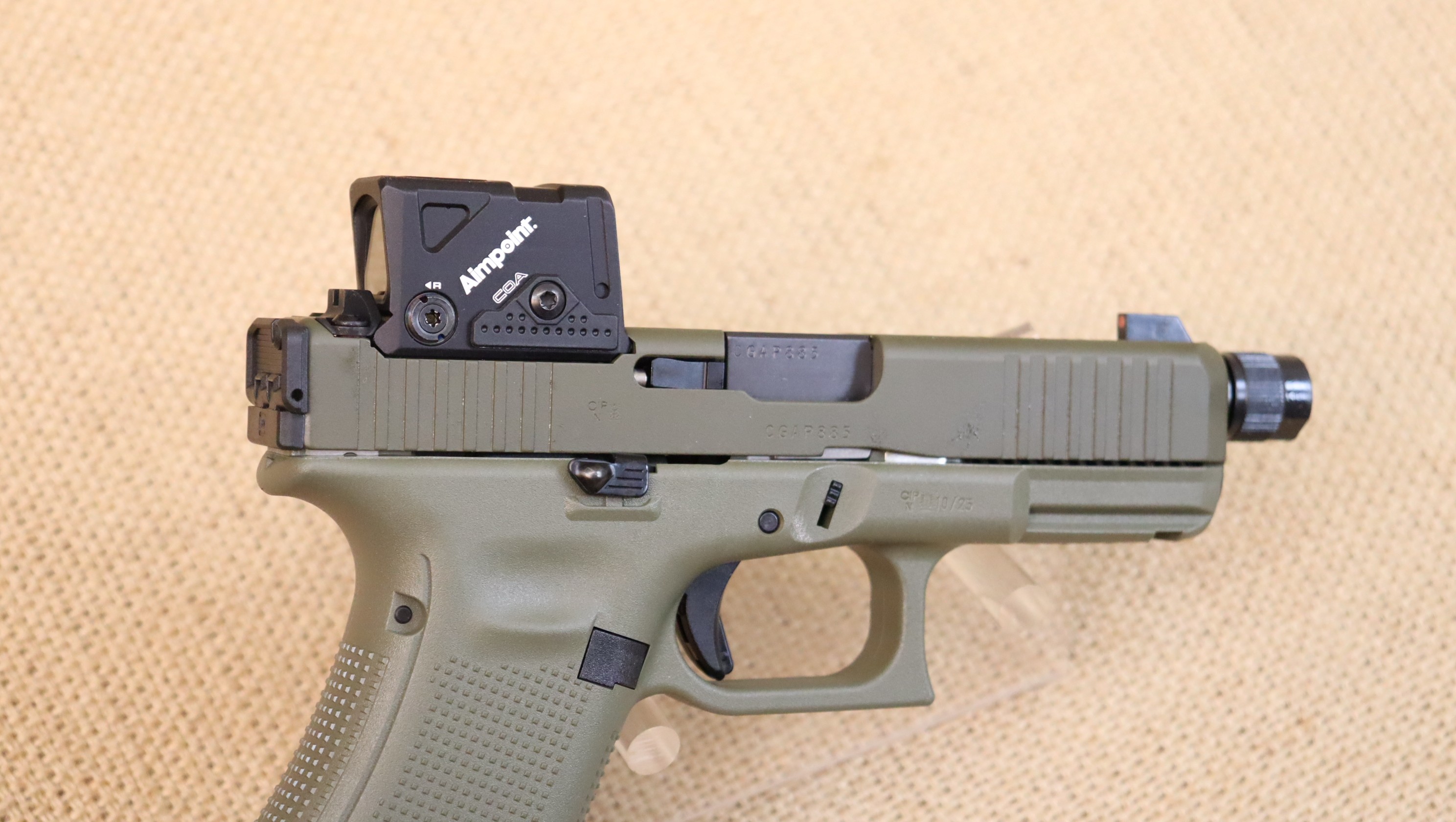 Neuwaffe. Limitiertes Sondermodell mit olivgrünem Griffstück und Verschluss — dezentes, taktisches Finish - Aimpoint COA Minileuchtpunktvisier - Gewindelauf — vorbereitet für Dämpfer/ Kompensator - beidseitig bedienbarer Verschlussfanghebel & Durchladehebel - Durchladehilfe am Verschluss - Fangriemenöse.