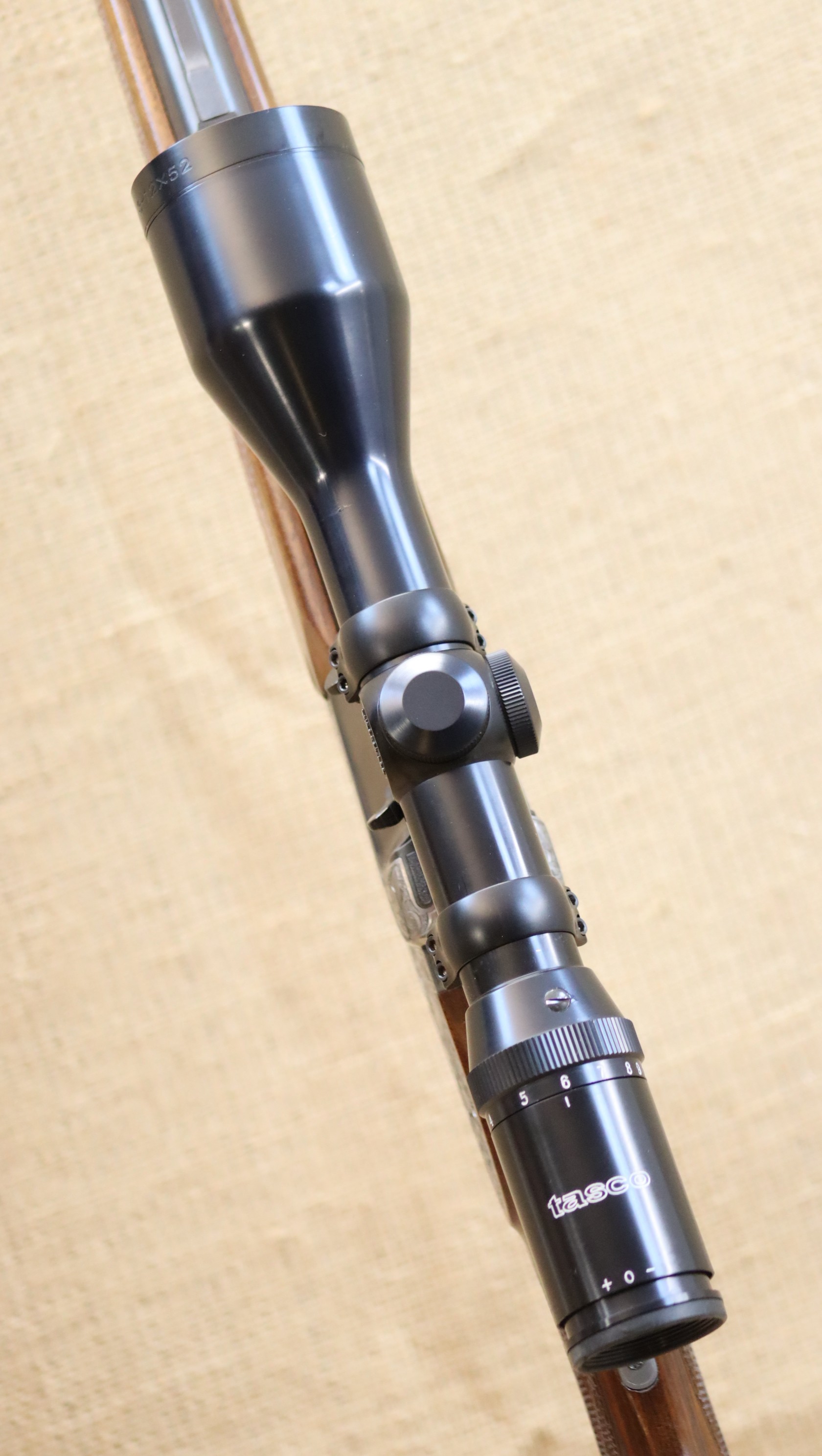 Sehr guter Zustand, nur geringe jagdliche Gebrauchsspuren. Zielfernrohr Tasco 3-12 x 52, Absehen 1.