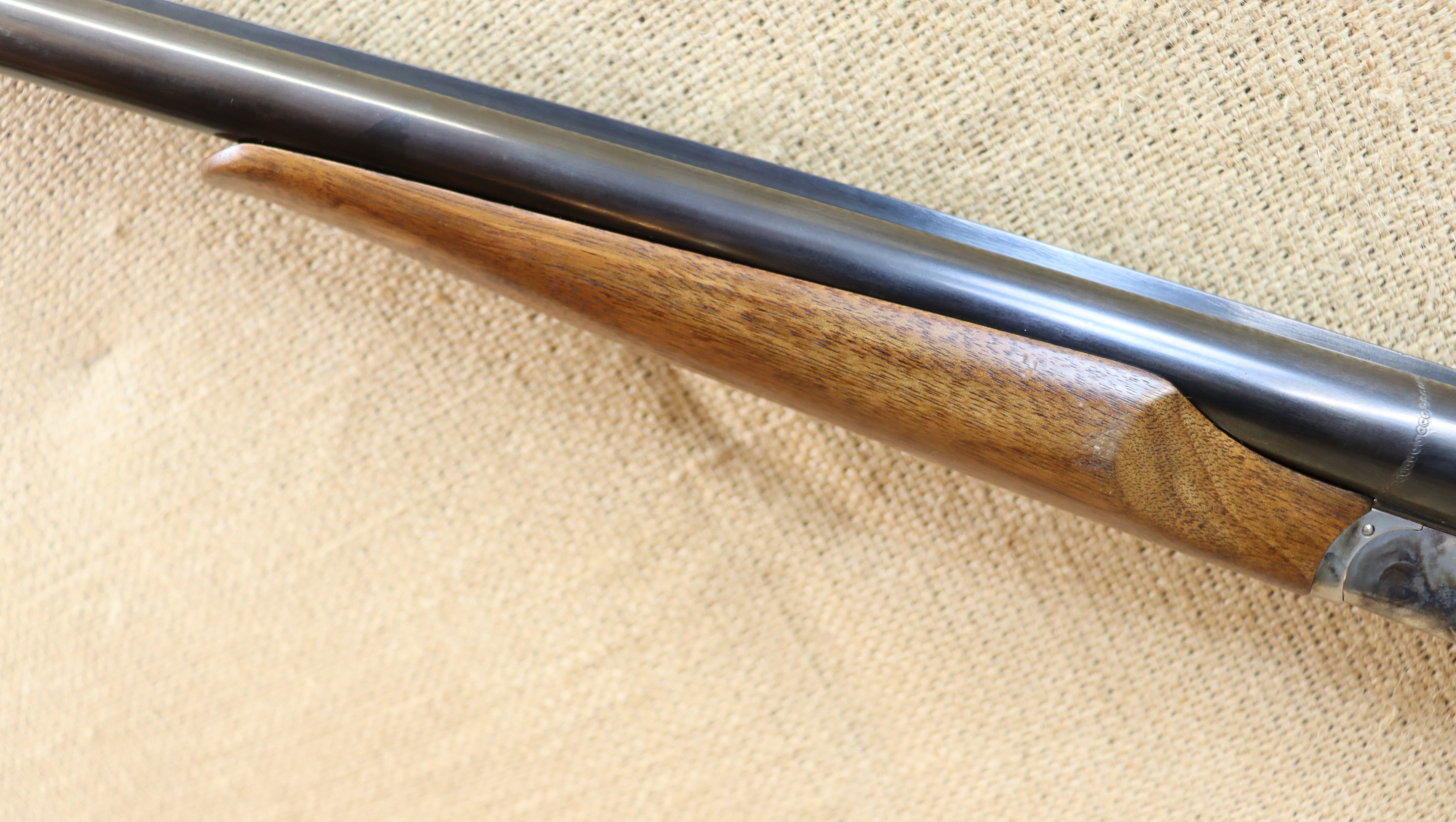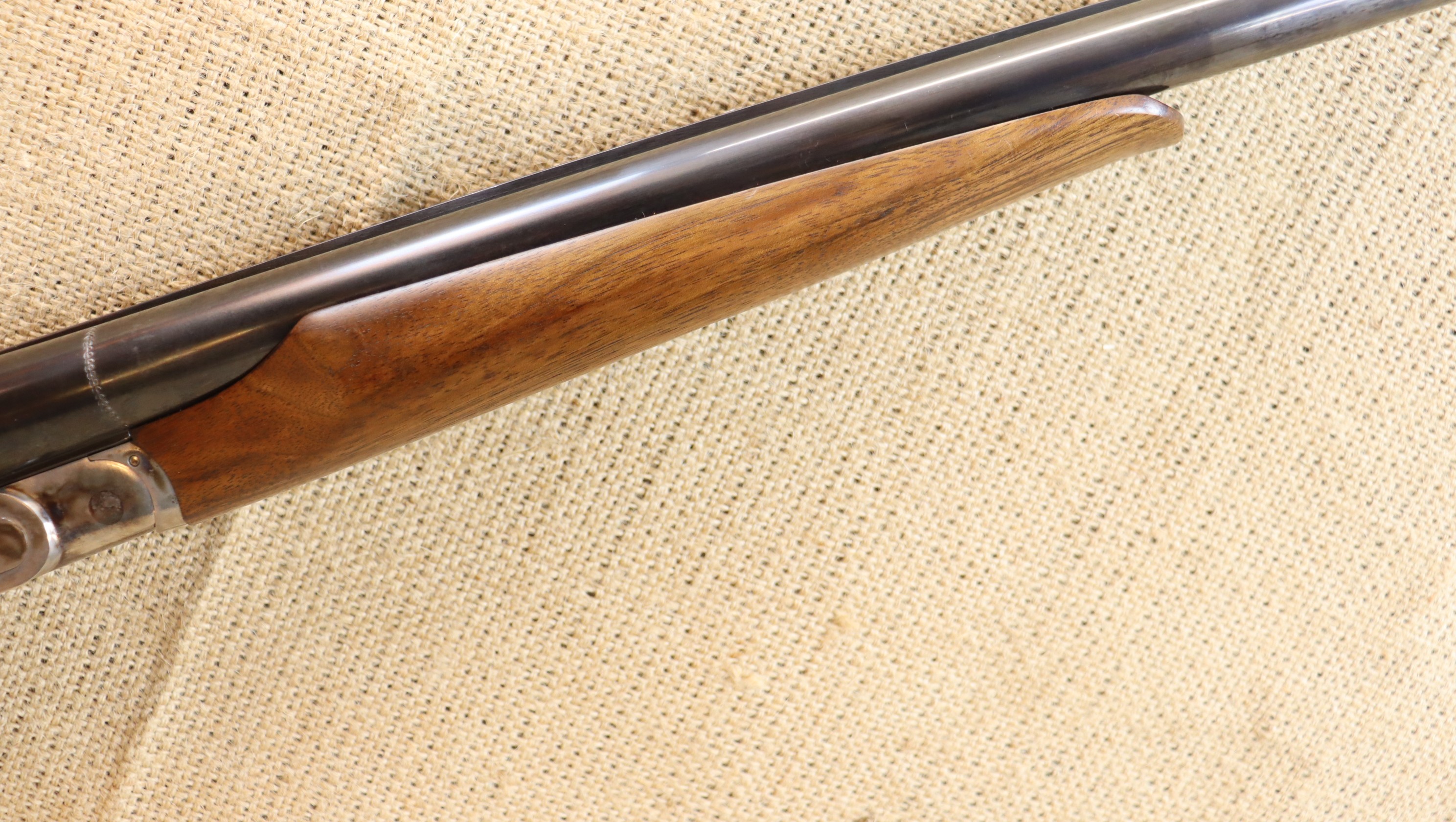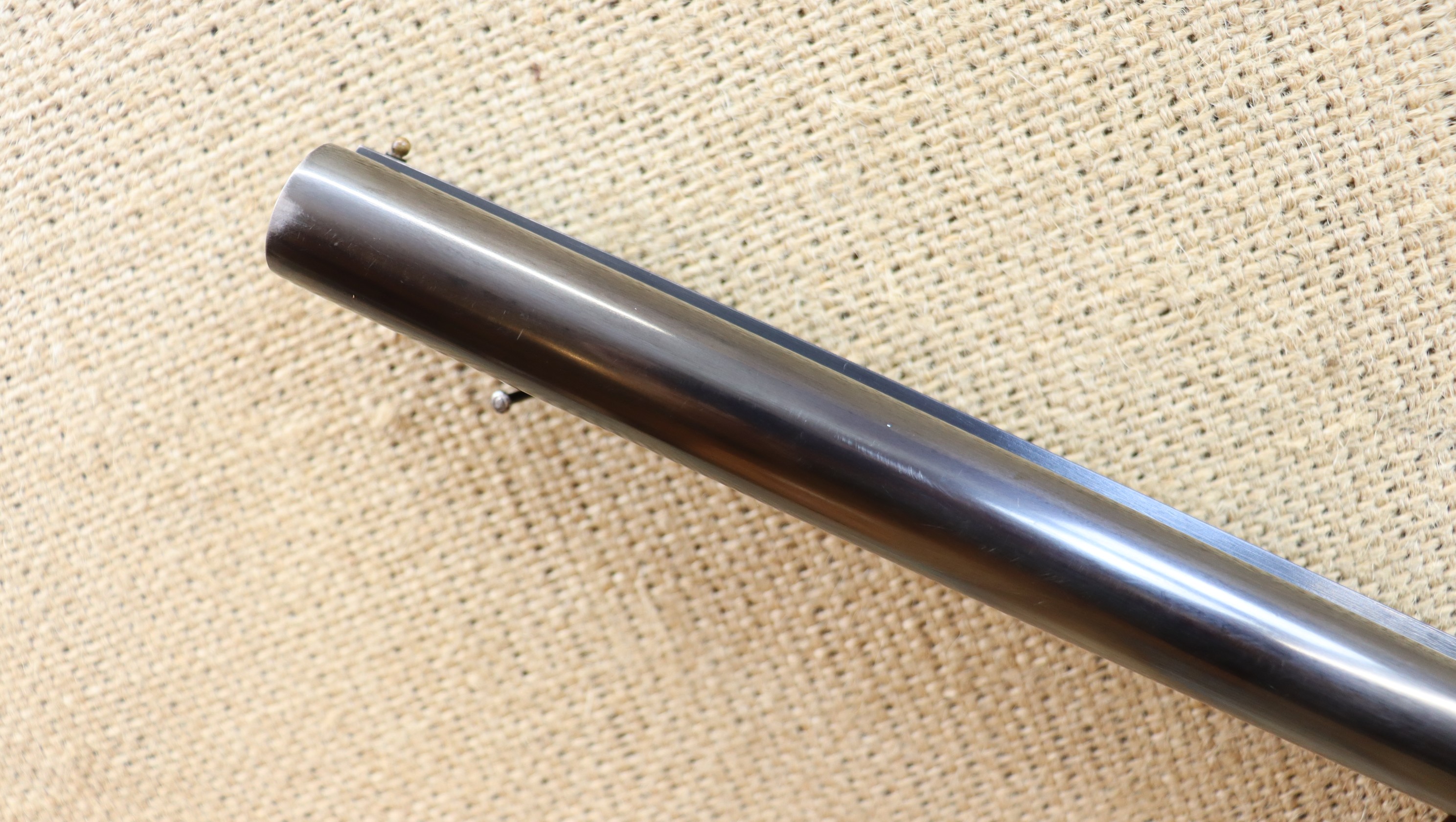 Sehr schöner Nachbau im Stil der legendären Colt Flinte Mod. 1878. Die Flinte hat eine sehr schöne Bunthärtung. Auch bei gespannten Hähnen lässt sich die Flinte öffnen und nachladen. Die Waffe hat optisch stärkere Gebrauchsspuren durch das Westenschiessen, ein paar Macken im Schaft und die Brünierung ist stellenweise berieben. Kommissionsverkauf im Kundenauftrag.