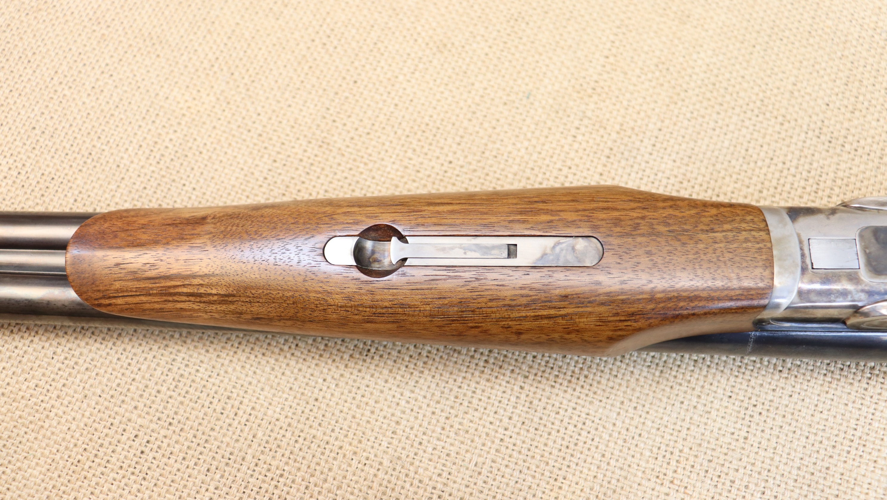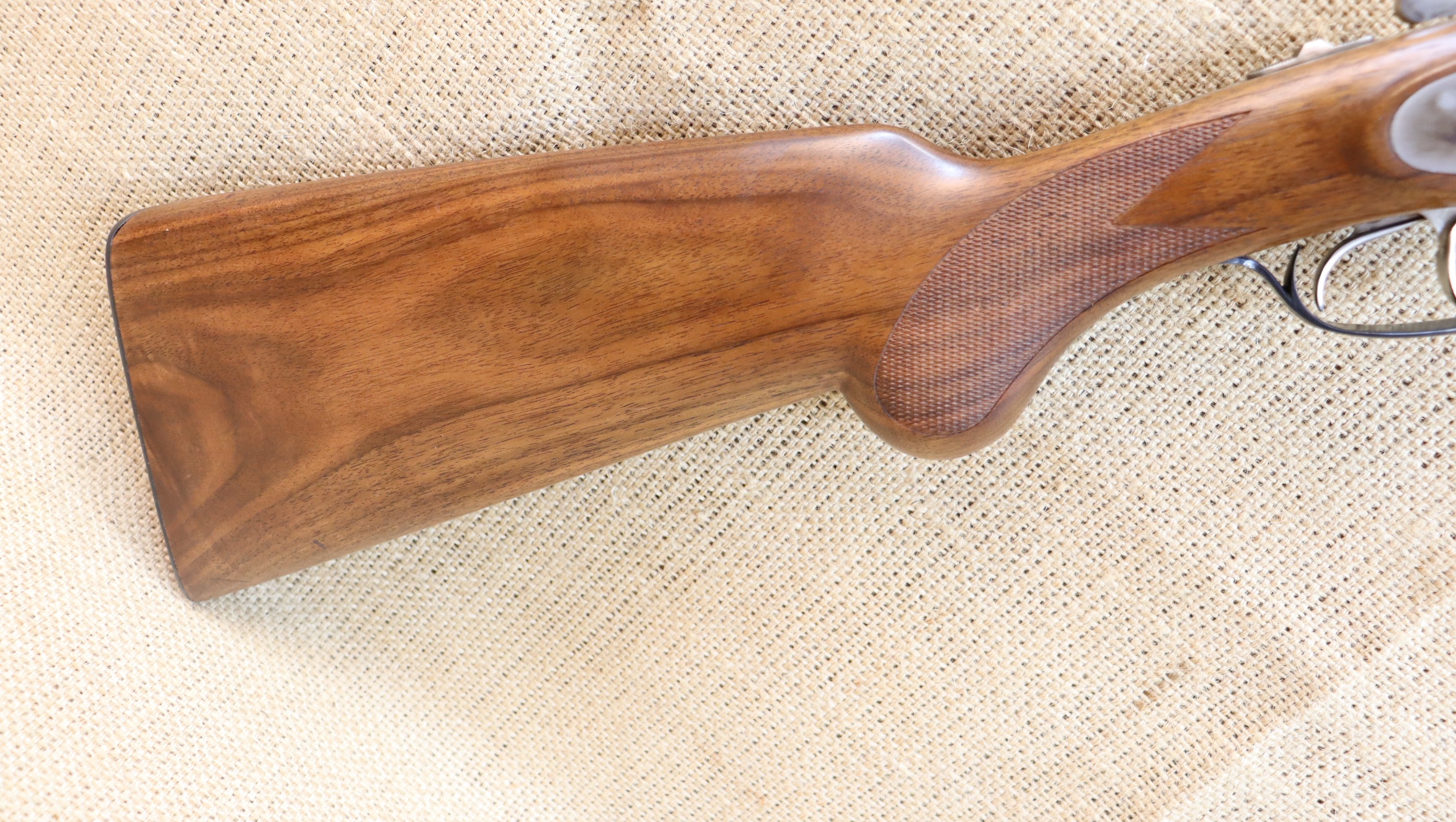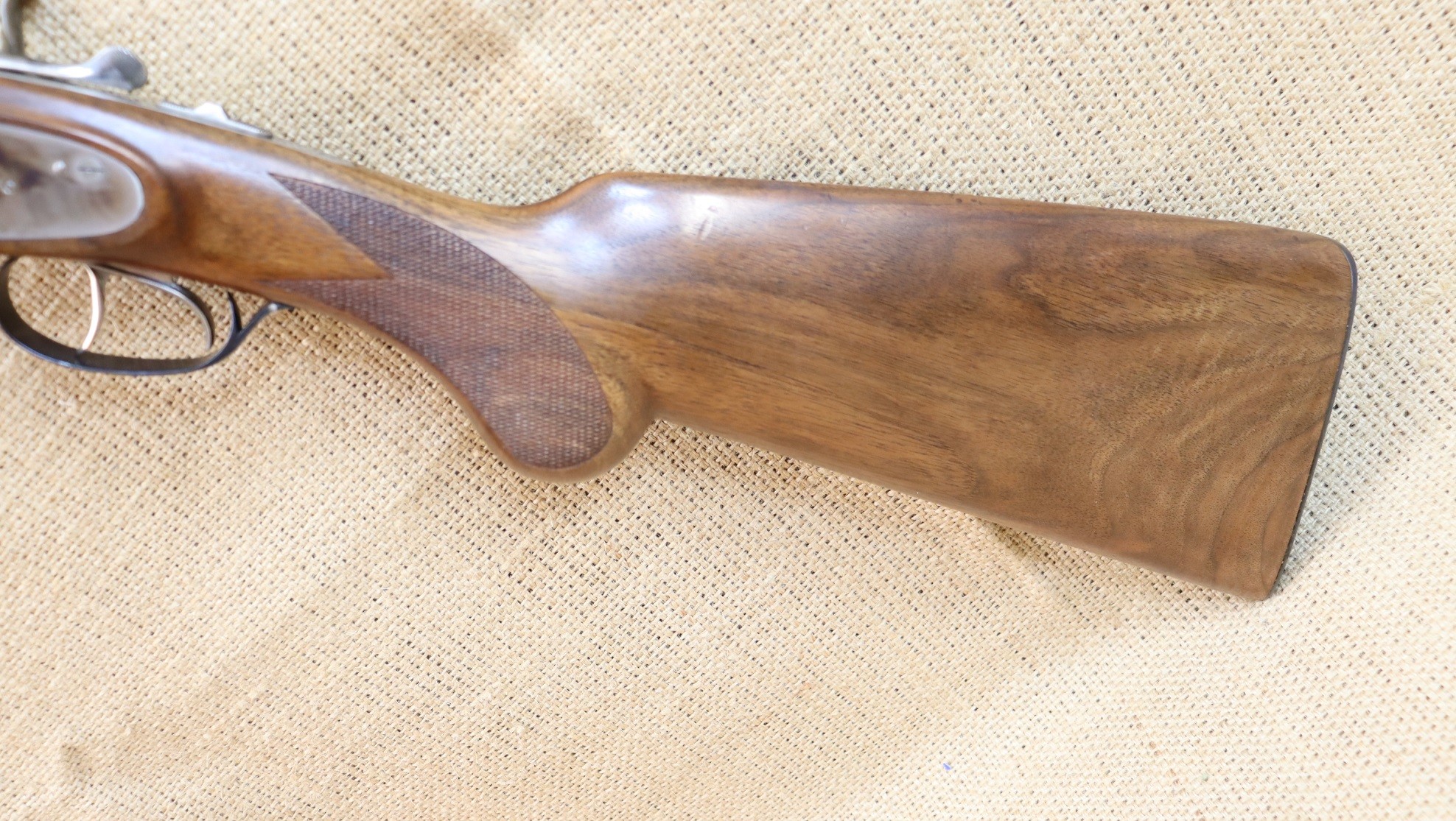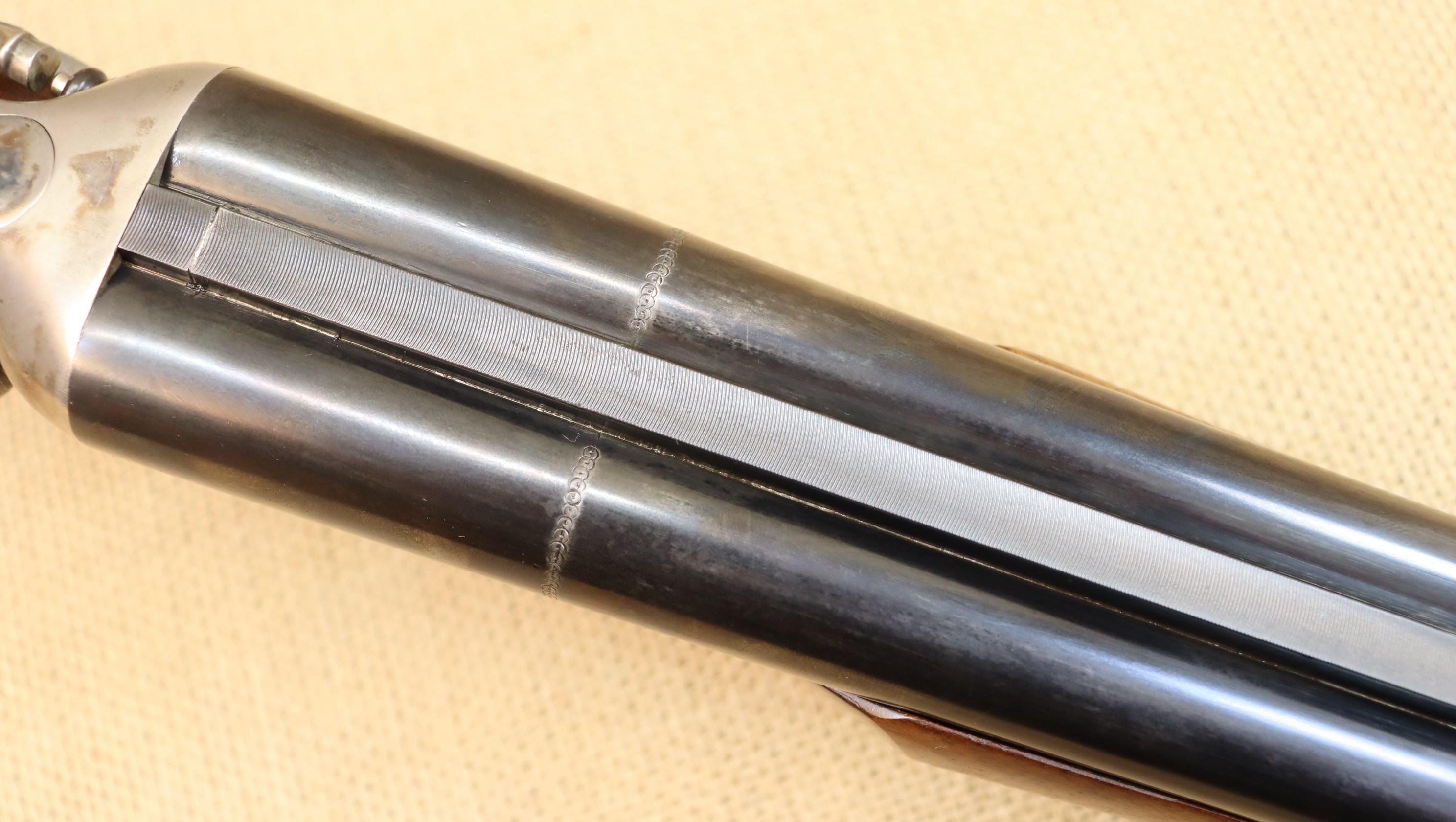 Sehr schöner Nachbau im Stil der legendären Colt Flinte Mod. 1878. Die Flinte hat eine sehr schöne Bunthärtung. Auch bei gespannten Hähnen lässt sich die Flinte öffnen und nachladen. Die Waffe hat optisch stärkere Gebrauchsspuren durch das Westenschiessen, ein paar Macken im Schaft und die Brünierung ist stellenweise berieben. Kommissionsverkauf im Kundenauftrag.