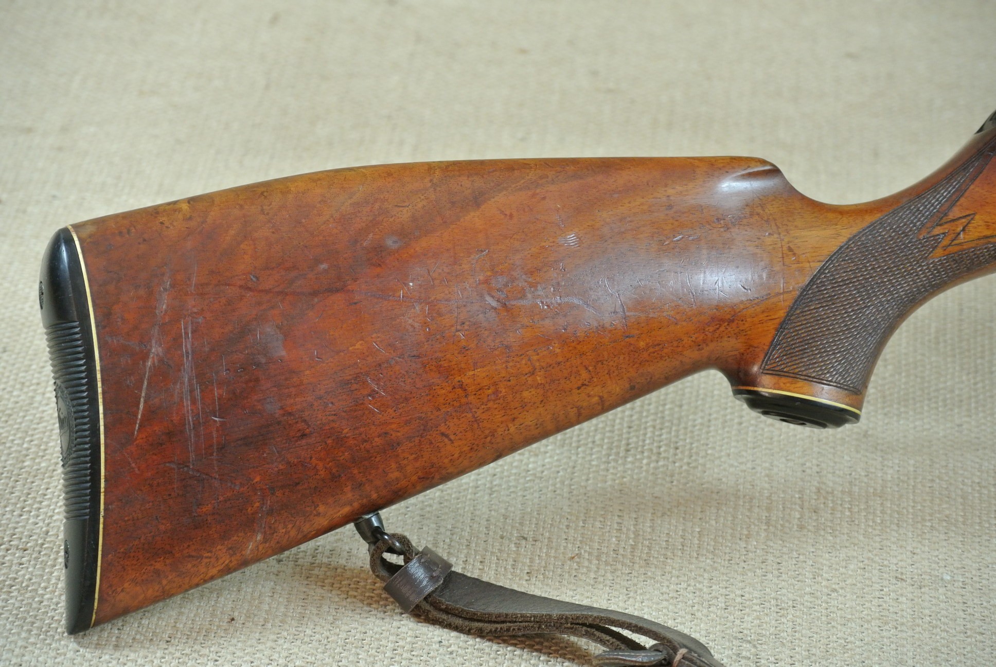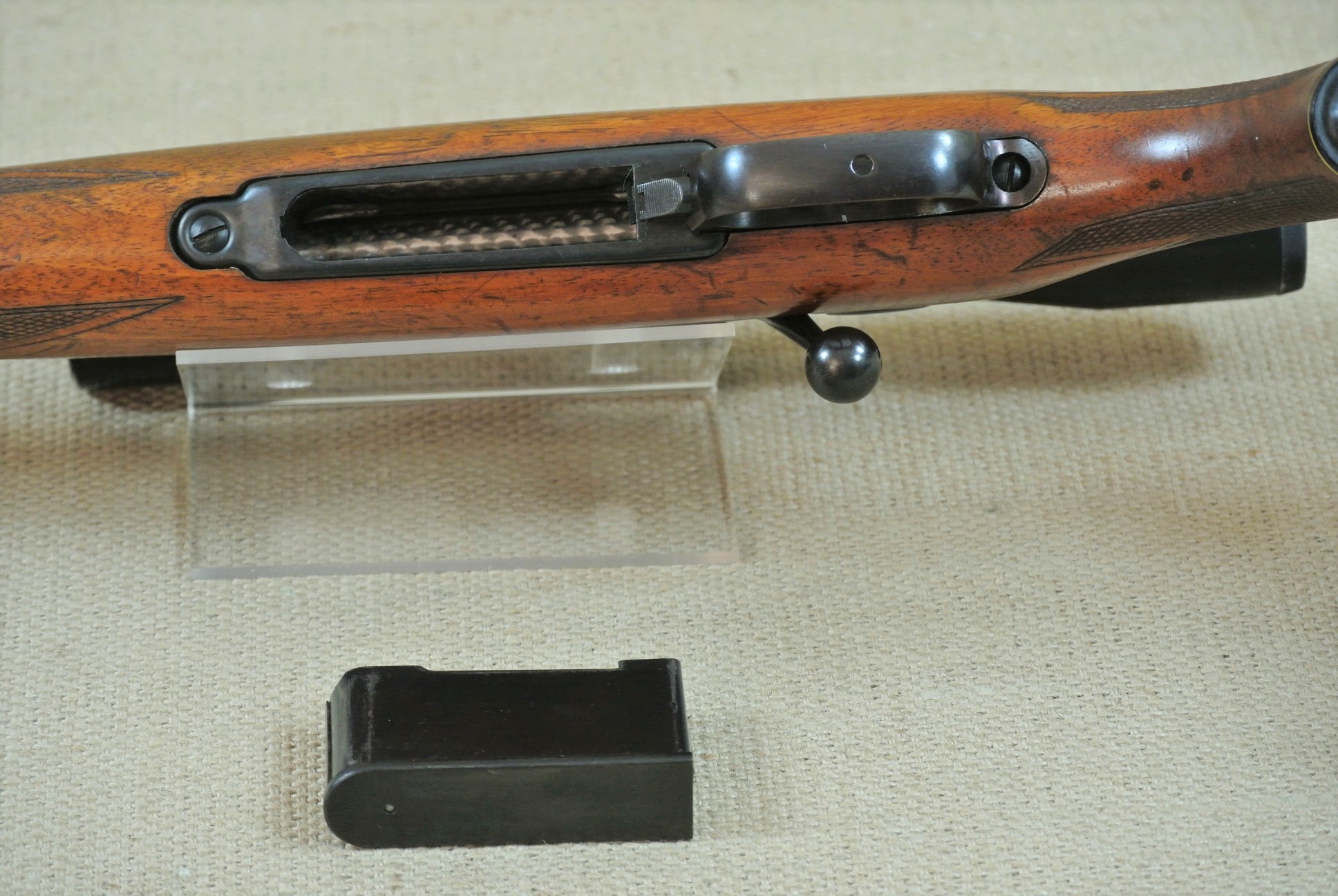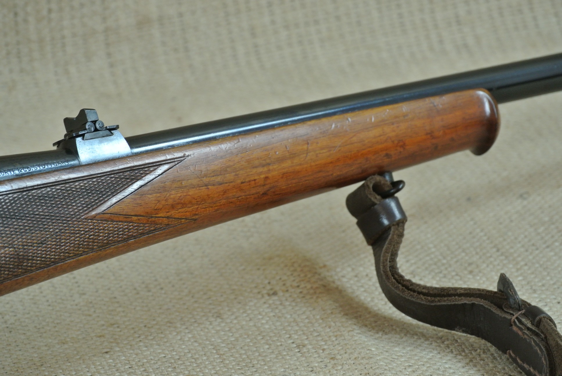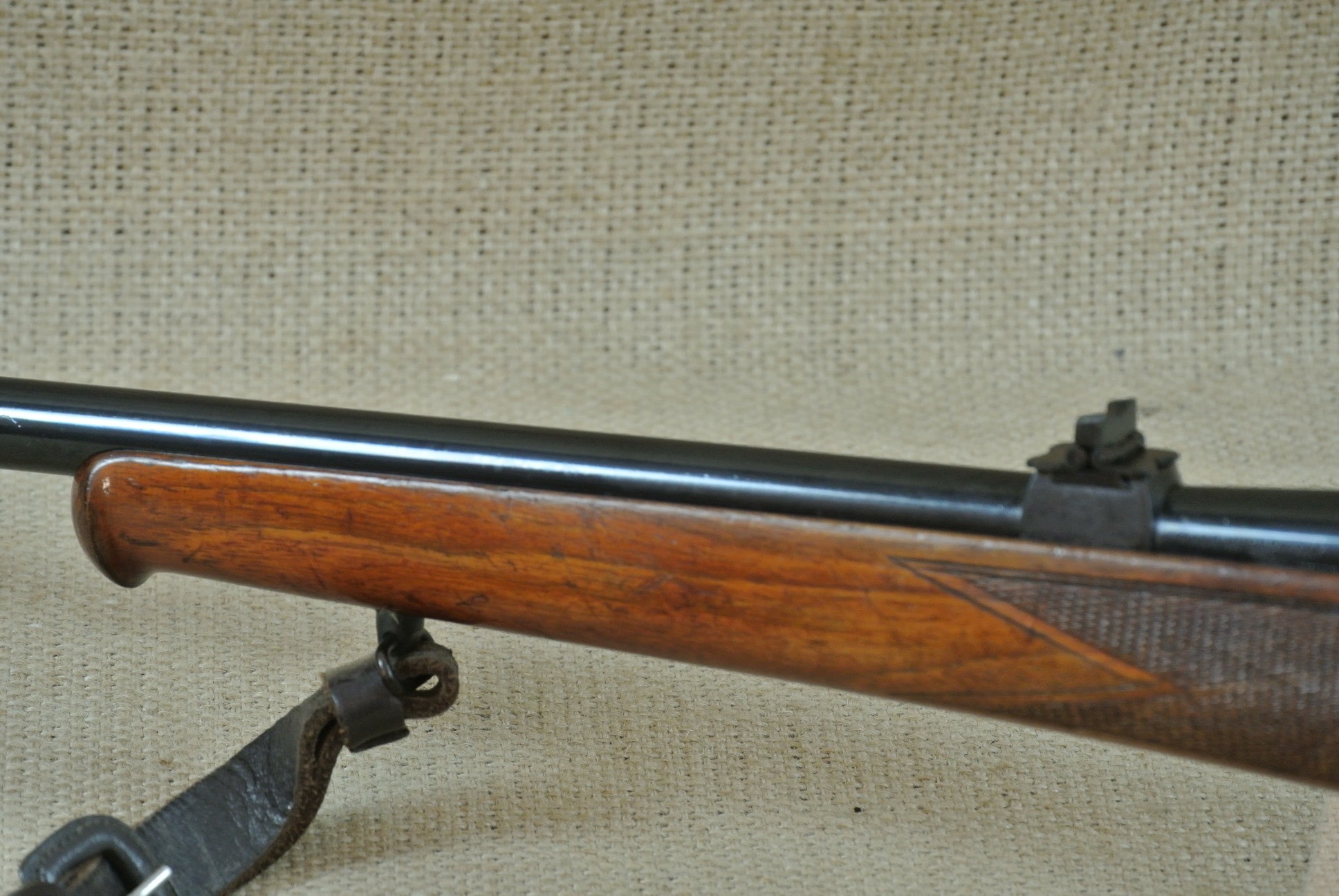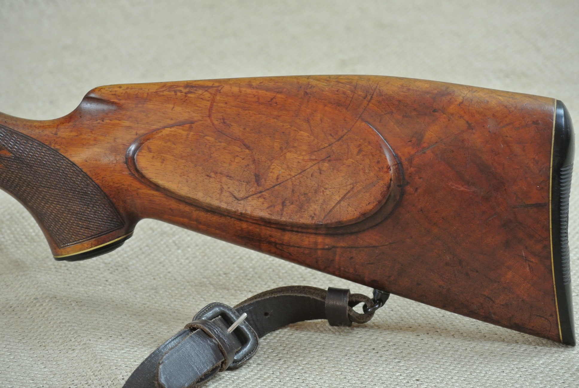 Äußerlich deutliche Gebrauchsspuren, inkl. Zielfernrohr Norris 4 x 36, Absehen 1 mit Klemm-Montage. Lauf sehr gut, blank.