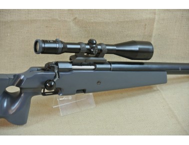 Sehr guter Zustand, inkl. ZF Zeiss Diavari 3-12 x 56 T Absehen - feines Fadenkreuz auf original Mauser-Montage. Schalldämpfer Brügger & Thomet Schweiz.