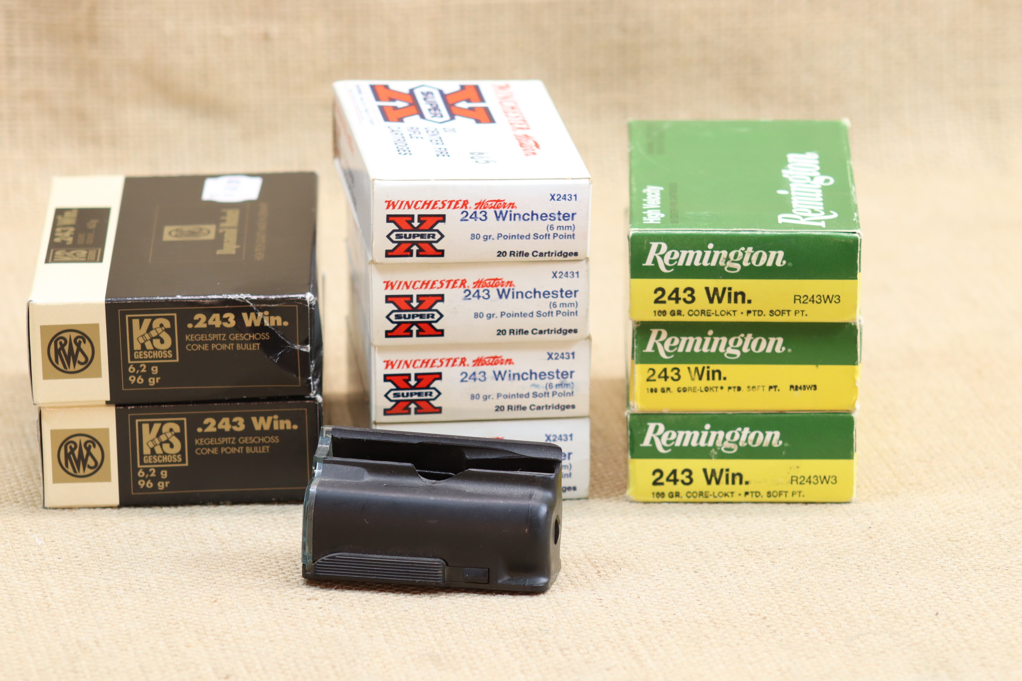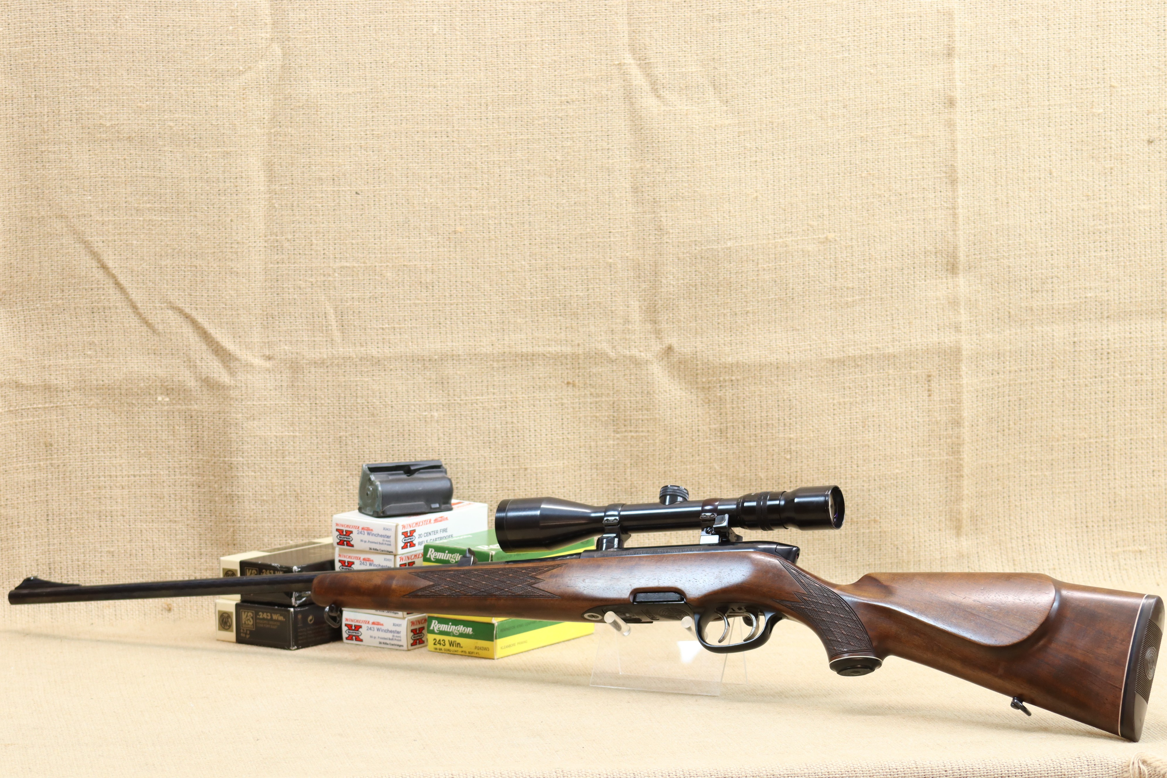 Weiterhin sind ein Ersatzmagazin und 180 Patronen im Kaliber .243 Winchester im Preis enthalten.