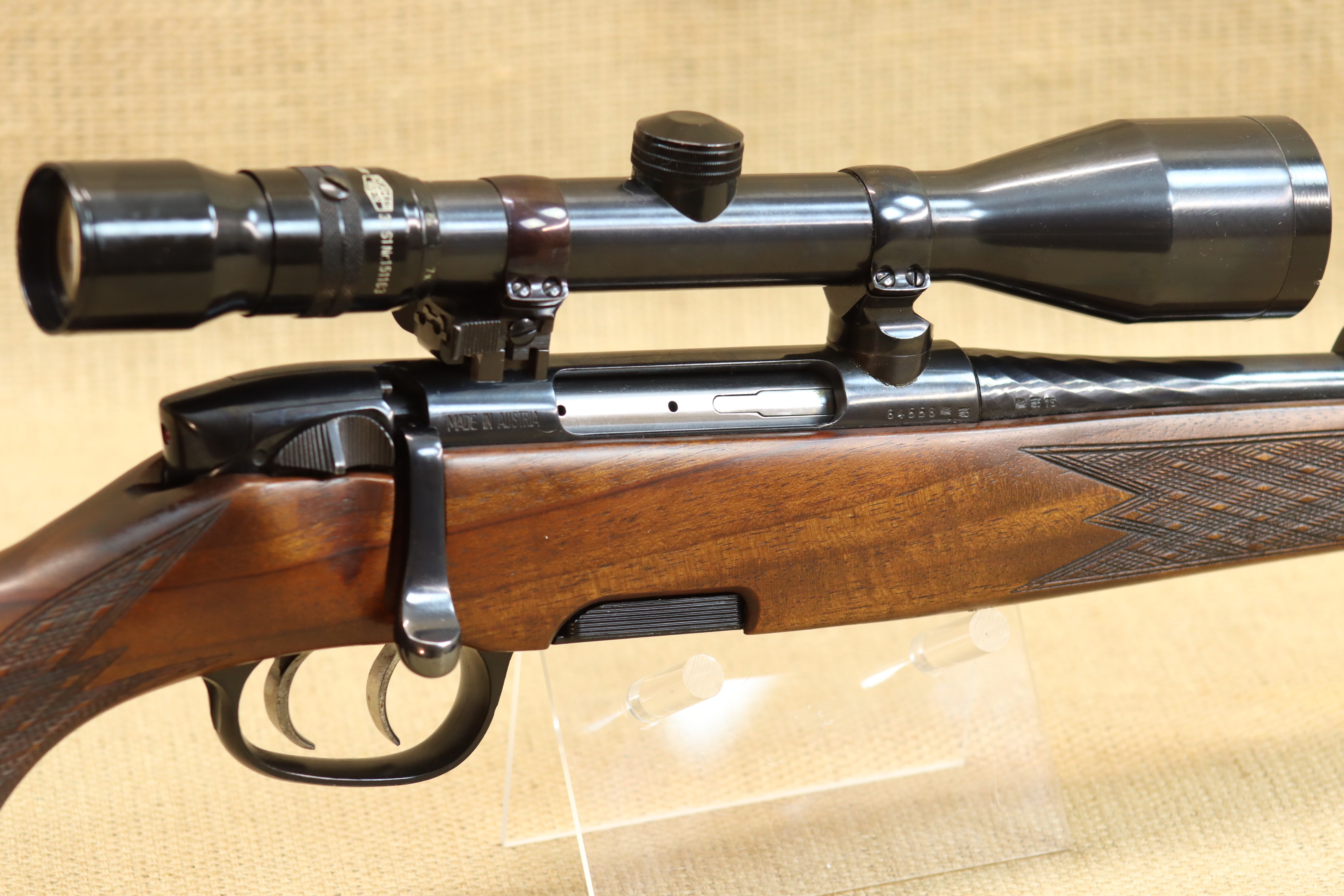 Sehr guter Zustand, mit geringen jagdlichen Gebrauchsspuren, inkl. Kahles Helia Super, 3-9 x 42 , Absehen 1.