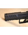 Die Pistole besticht durch ihr markantes Äußeres. Tiefe Durchladerillen finden sich sowohl vorne als auch hinten am Verschluss. Die ausgeschwungene Formgebung am Griffende gibt dem kleinen Finger Halt und unterstützt beim intuitiven Deuten. Alle Modelle der PDP-Serie haben einen beidseitigen Verschlussfanghebel, einen umsteckbaren Magazinknopf und kommen Optics Ready mit ausgefräster Schlittenoberseite.