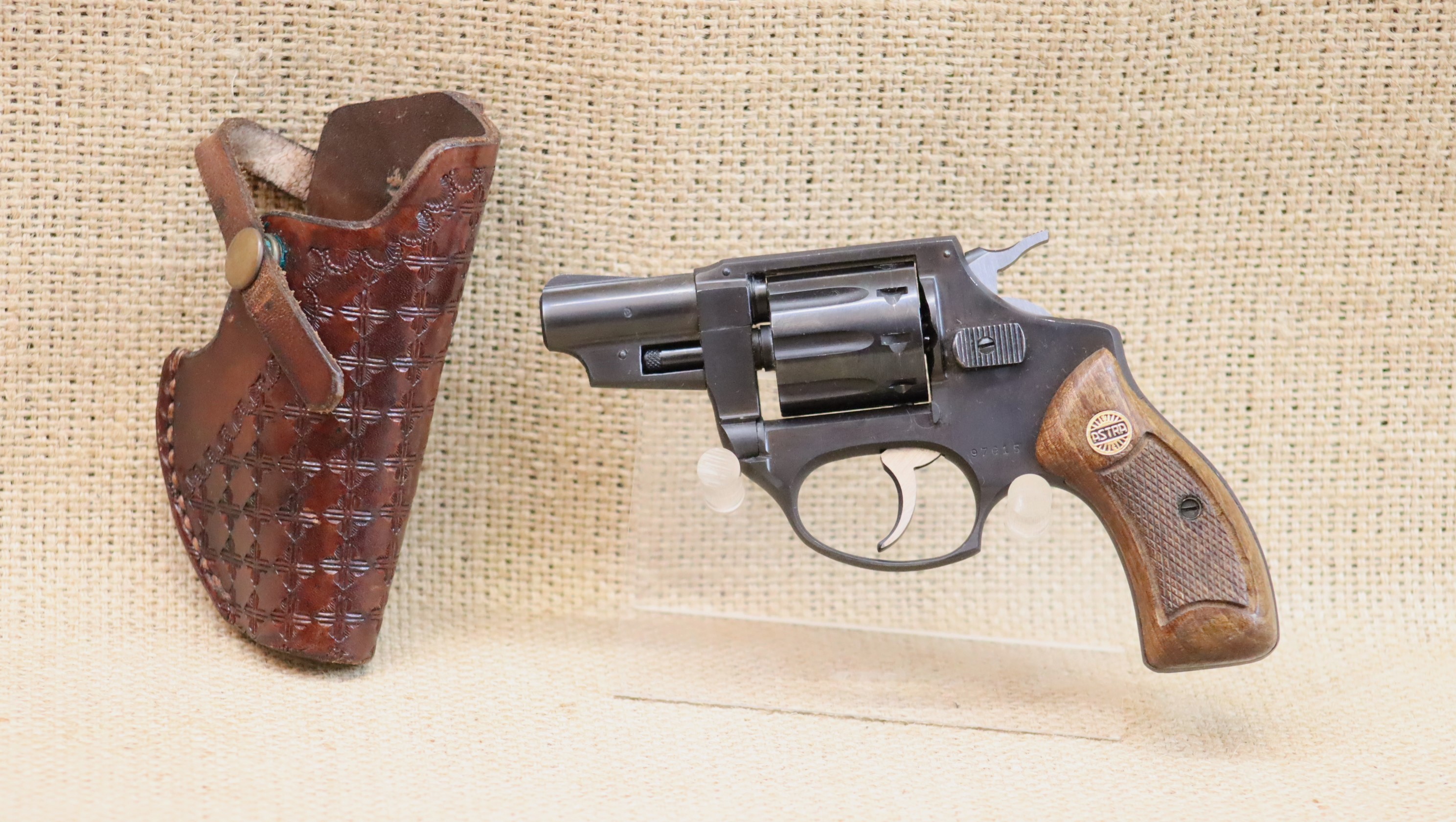 Guter Zustand mit Gebrauchsspuren, inkl. Holster. Schöner kleiner Revolver für die Fallenjagd.