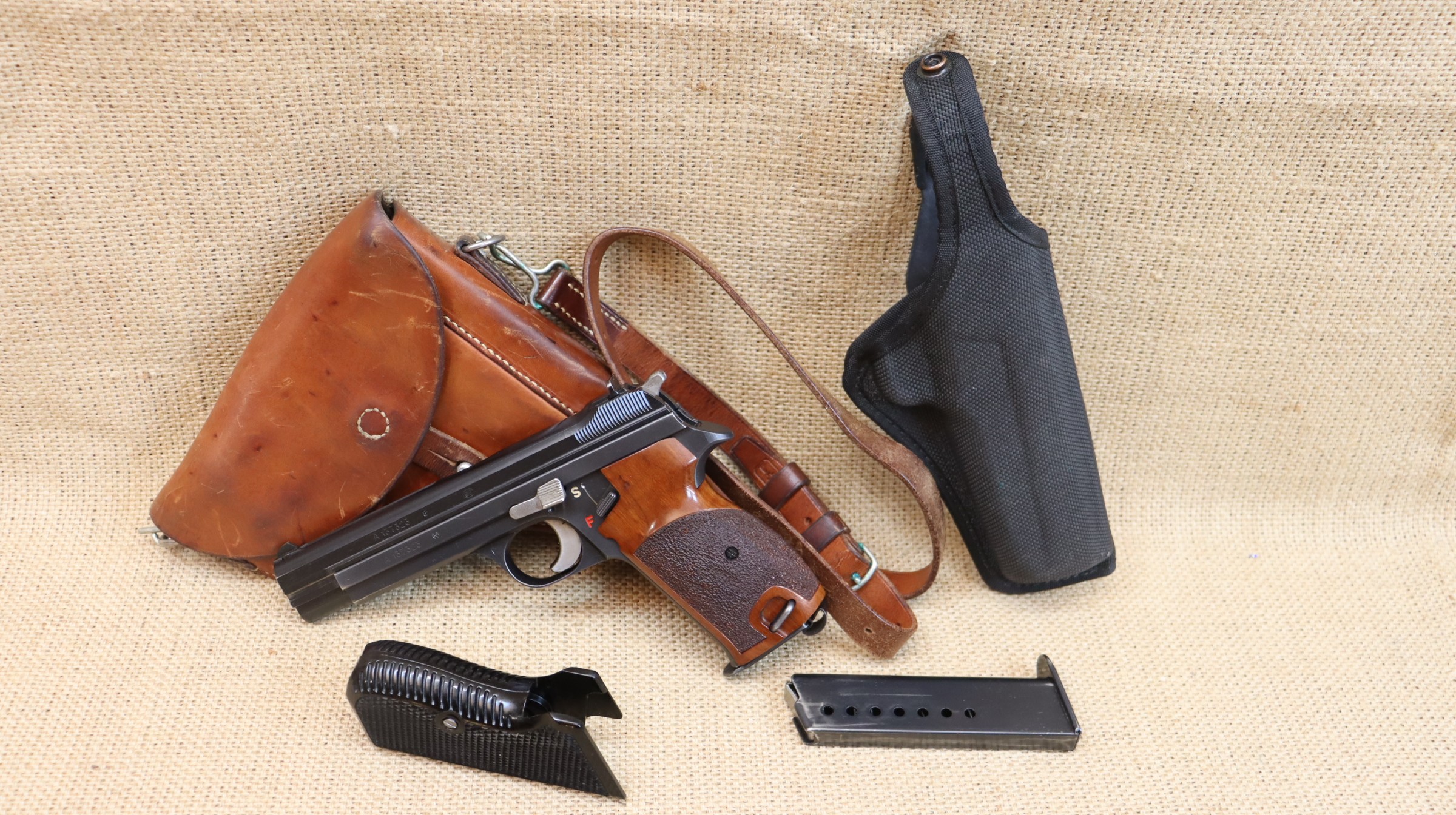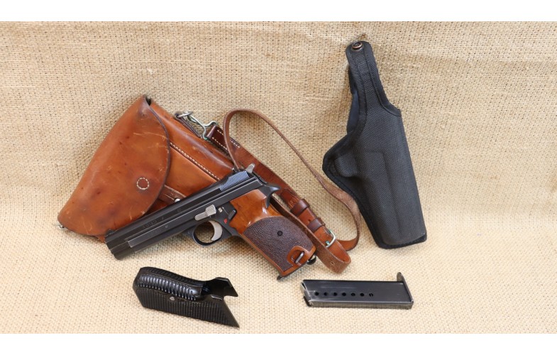 Guter Zustand, inkl. Ersatzmagazin, orig. Schweizer-Holster, Nill-Griff, orig. Griff u. Bianchi-Holster.