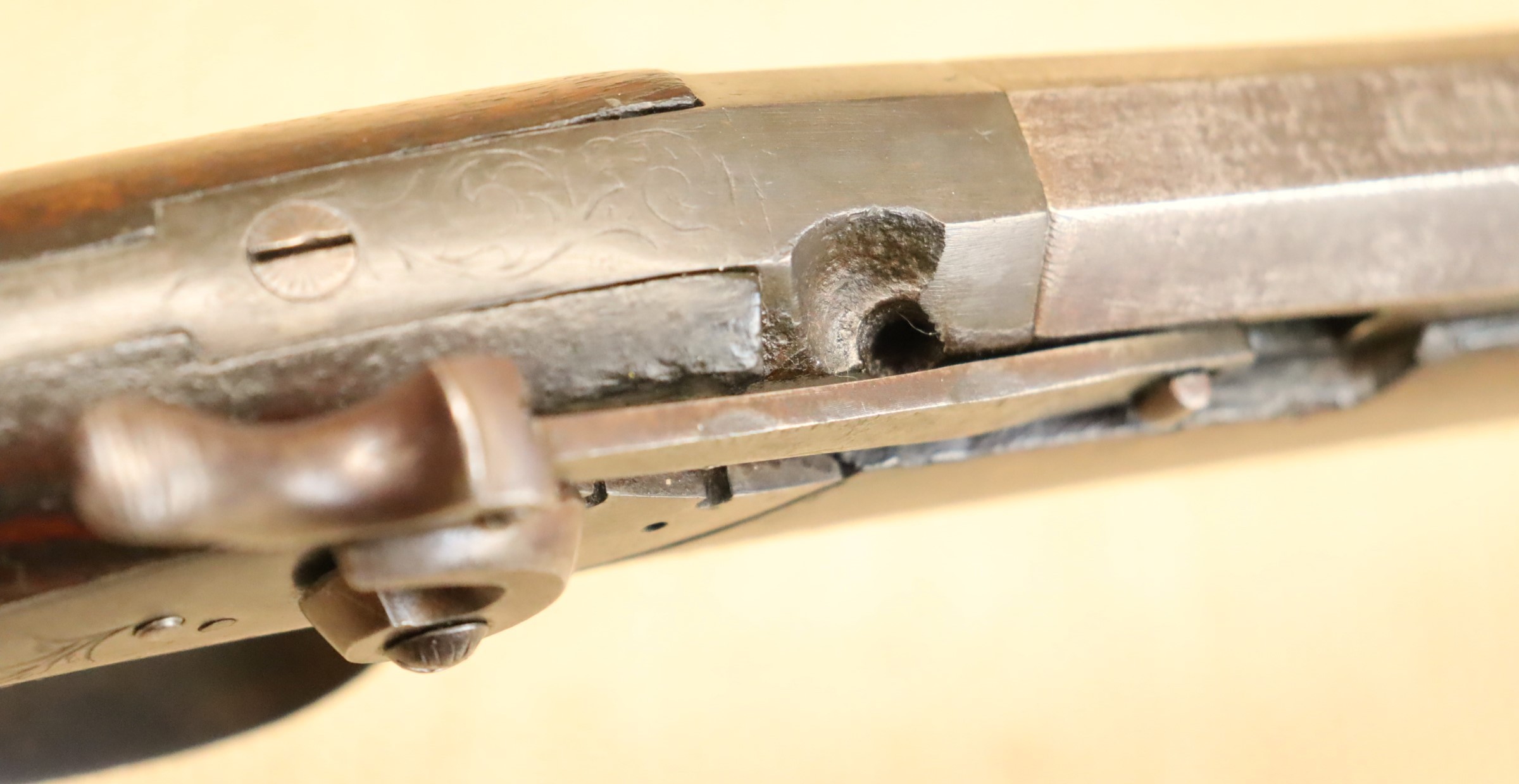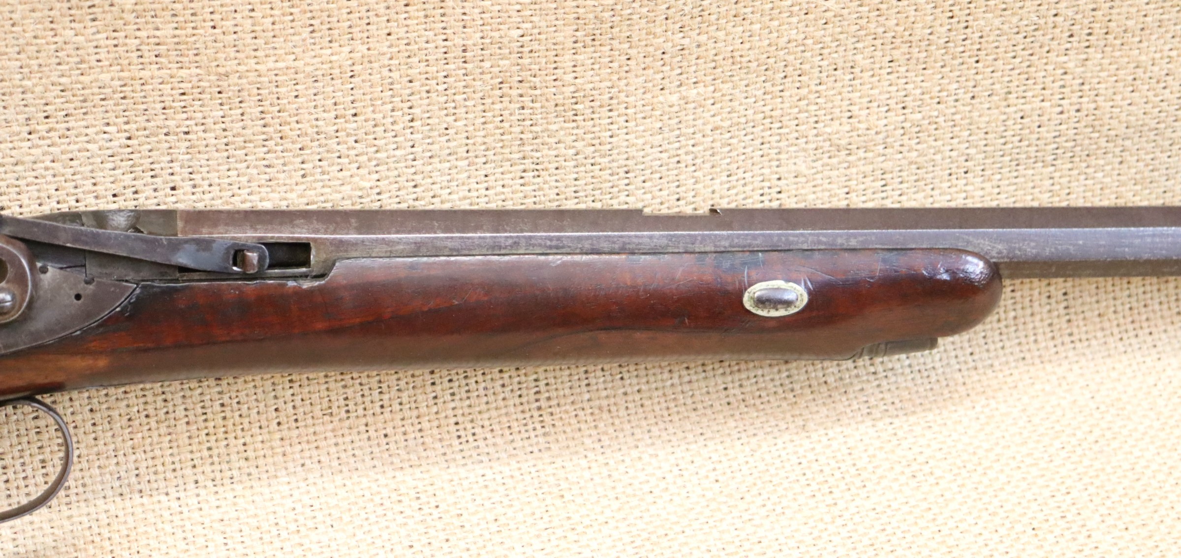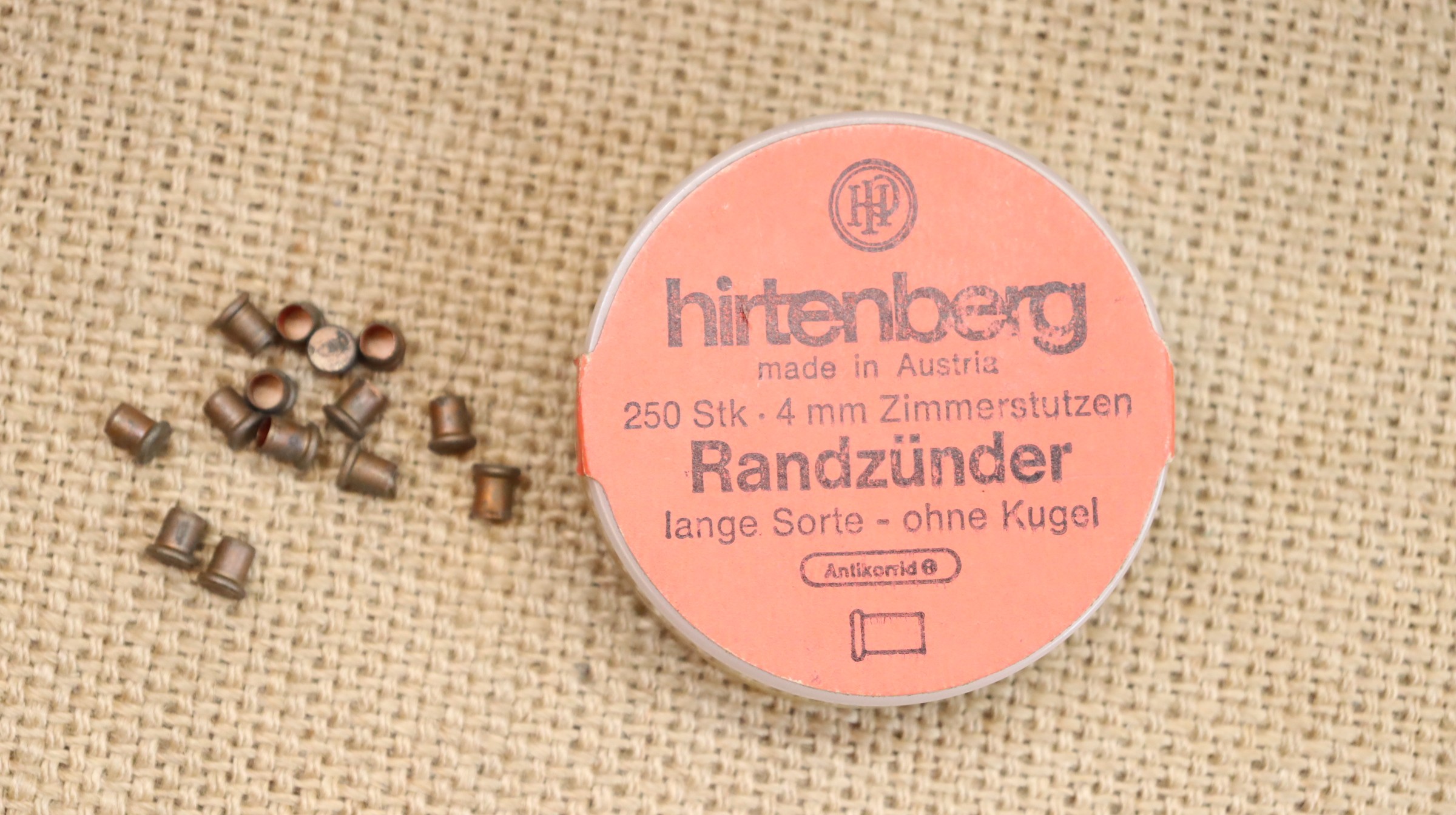 Guter Zustand, blanker Lauf, Metallteile mit dunkler Patina. Der Zimmerstutzen wurde aus einer Pekussionsbüchse gefertigt. Kugel und Zünd-Hülse werden einzeln geladen.