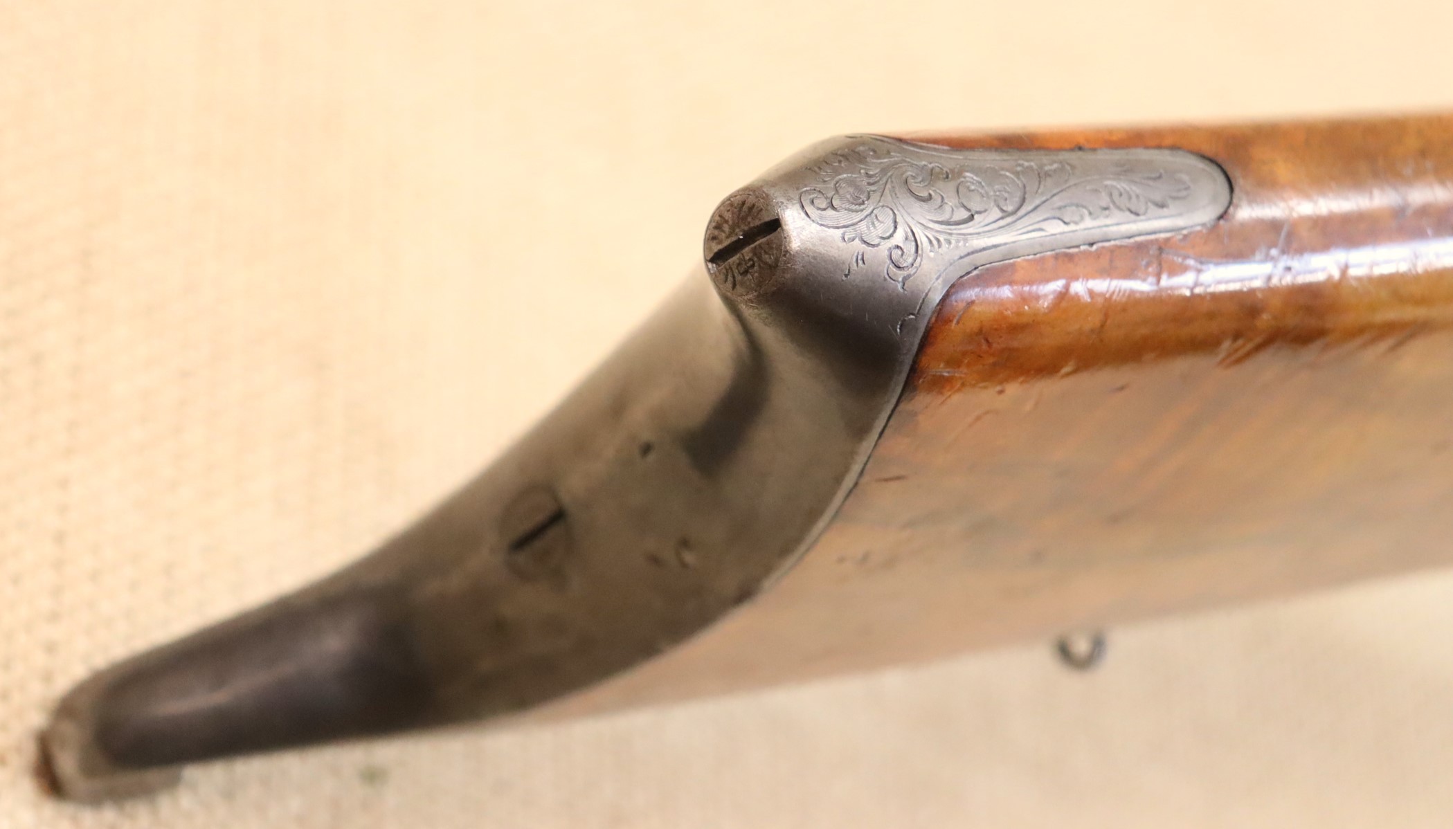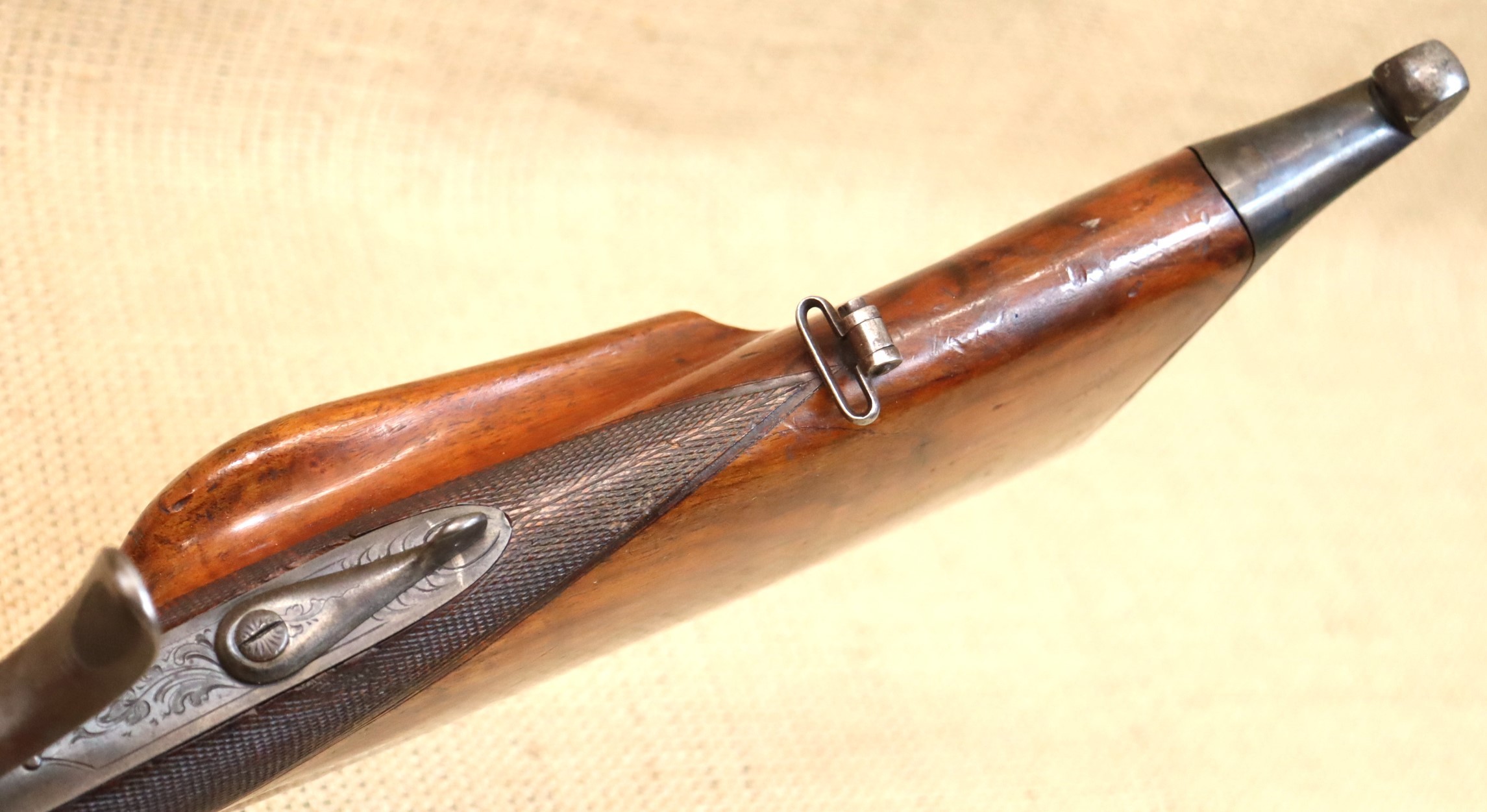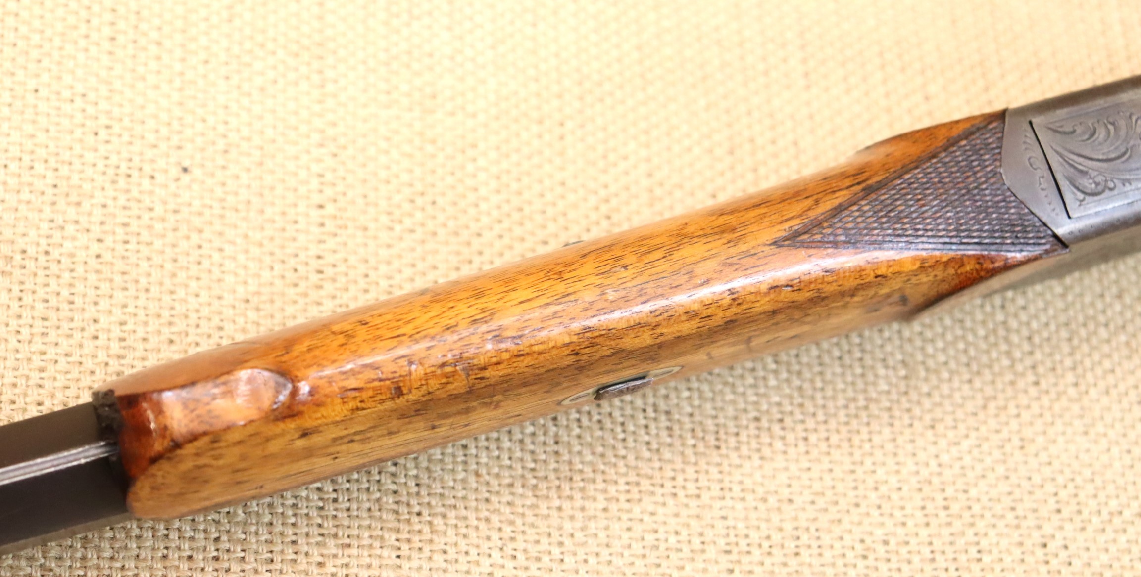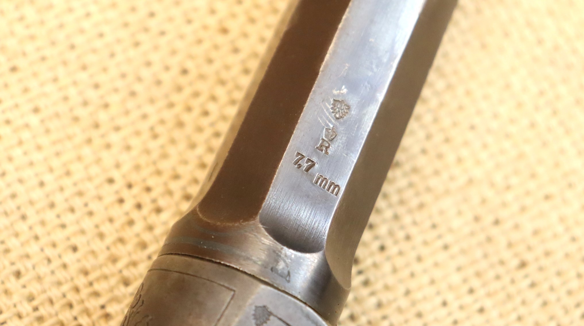 Guter Zustand, blanker Lauf. Kaliberangabe auf dem Lauf 7,7 mm. Ohne Herstellerangabe, gültiger Beschuss.