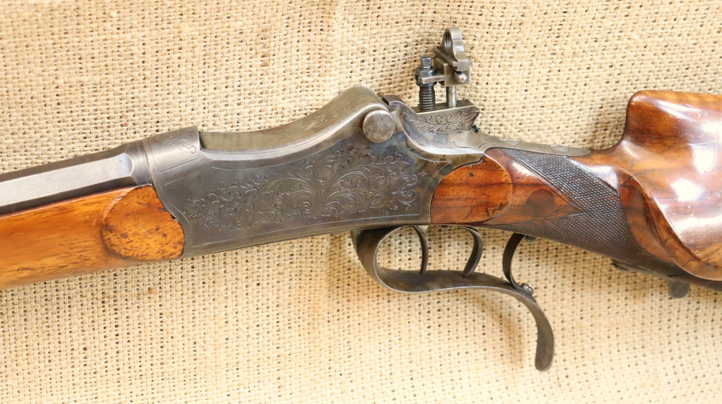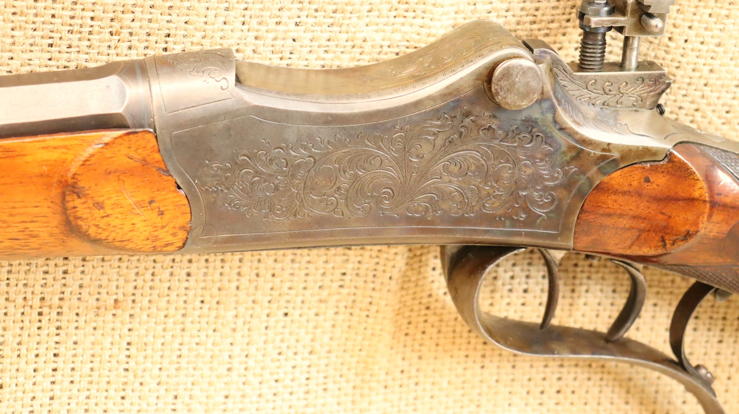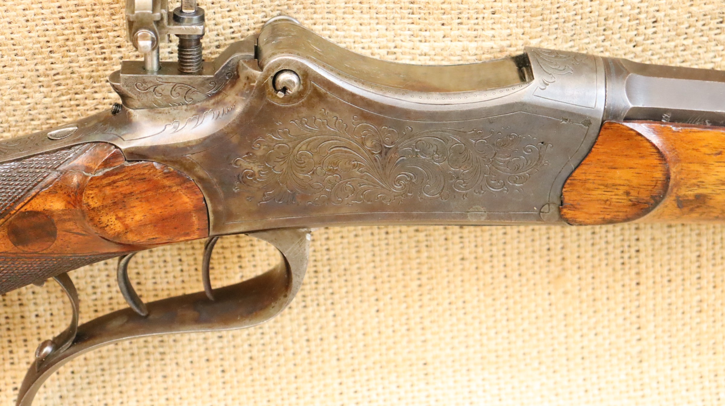 Guter Zustand, blanker Lauf. Kaliberangabe auf dem Lauf 7,7 mm. Ohne Herstellerangabe, gültiger Beschuss.