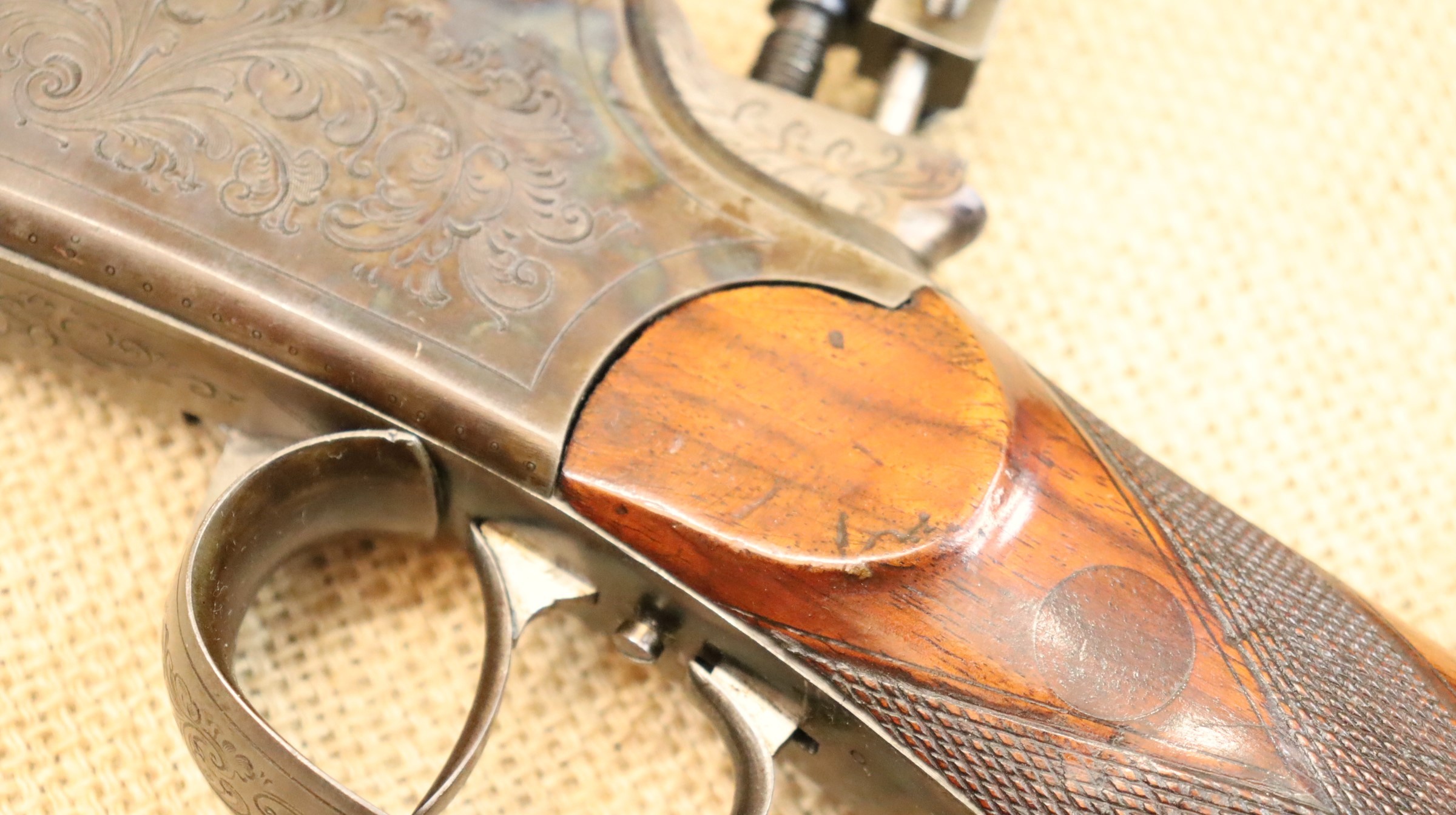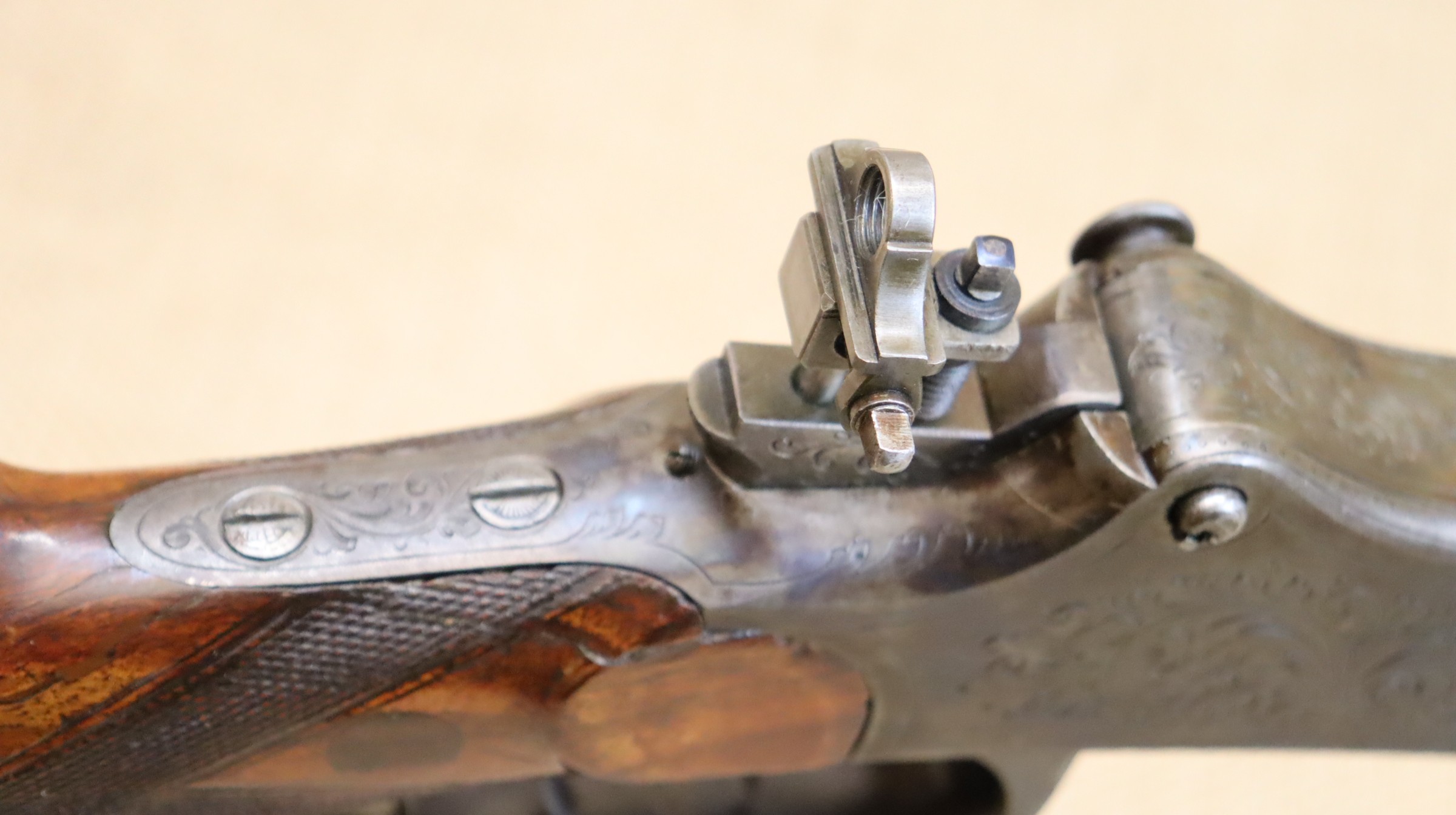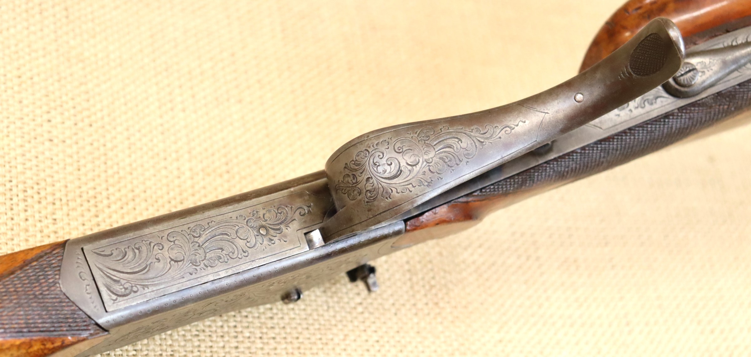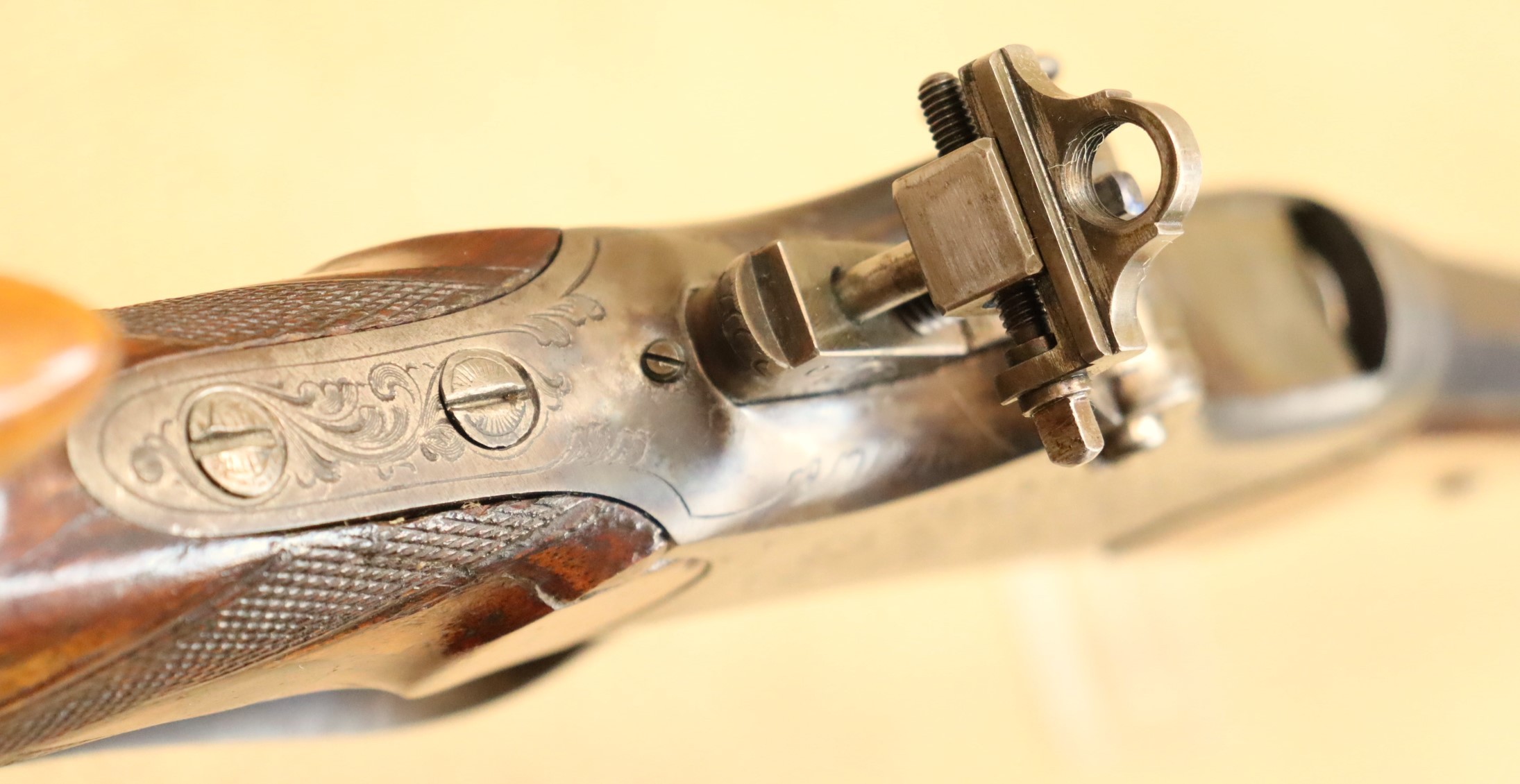 Guter Zustand, blanker Lauf. Kaliberangabe auf dem Lauf 7,7 mm. Ohne Herstellerangabe, gültiger Beschuss.
