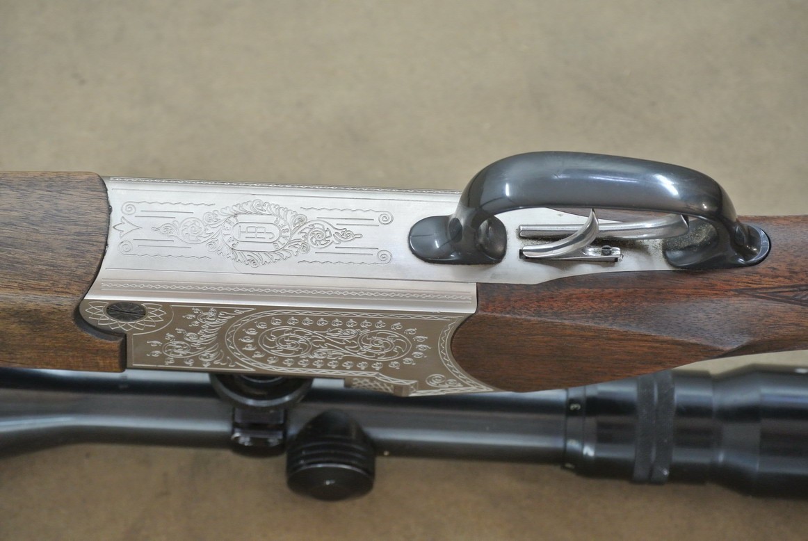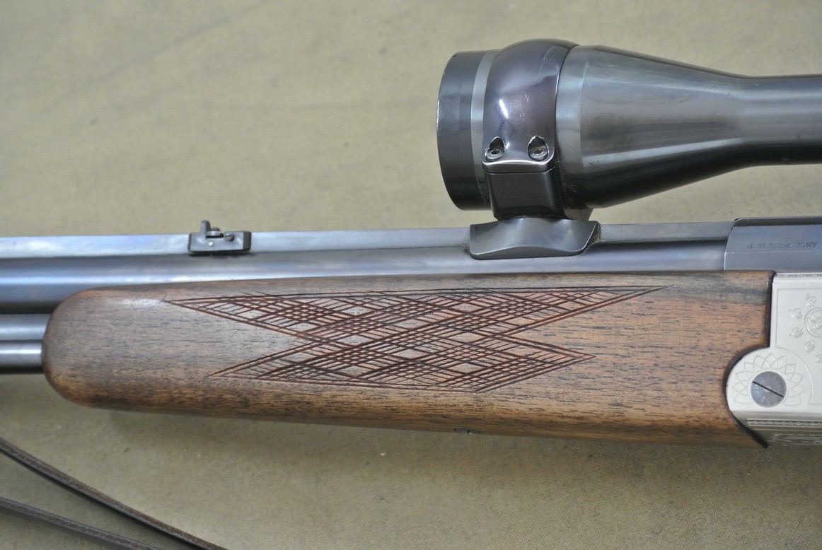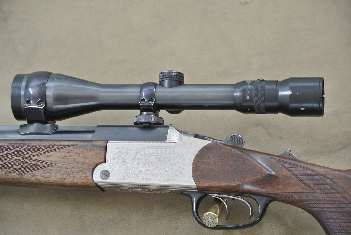 Sehr guter Zustand, mit Gebrauchsspuren. Läufe spiegelblank, ZF Kahles Helia Super 3-9 x 42, Abs. 1 auf Schwenkmontage, inkl. Gewehrriemen. Hinterschaftlänge: Mitte Kappe bis vorderer Abzug 34 cm.
