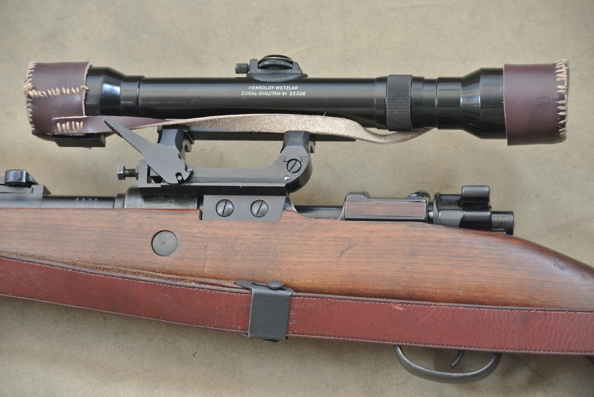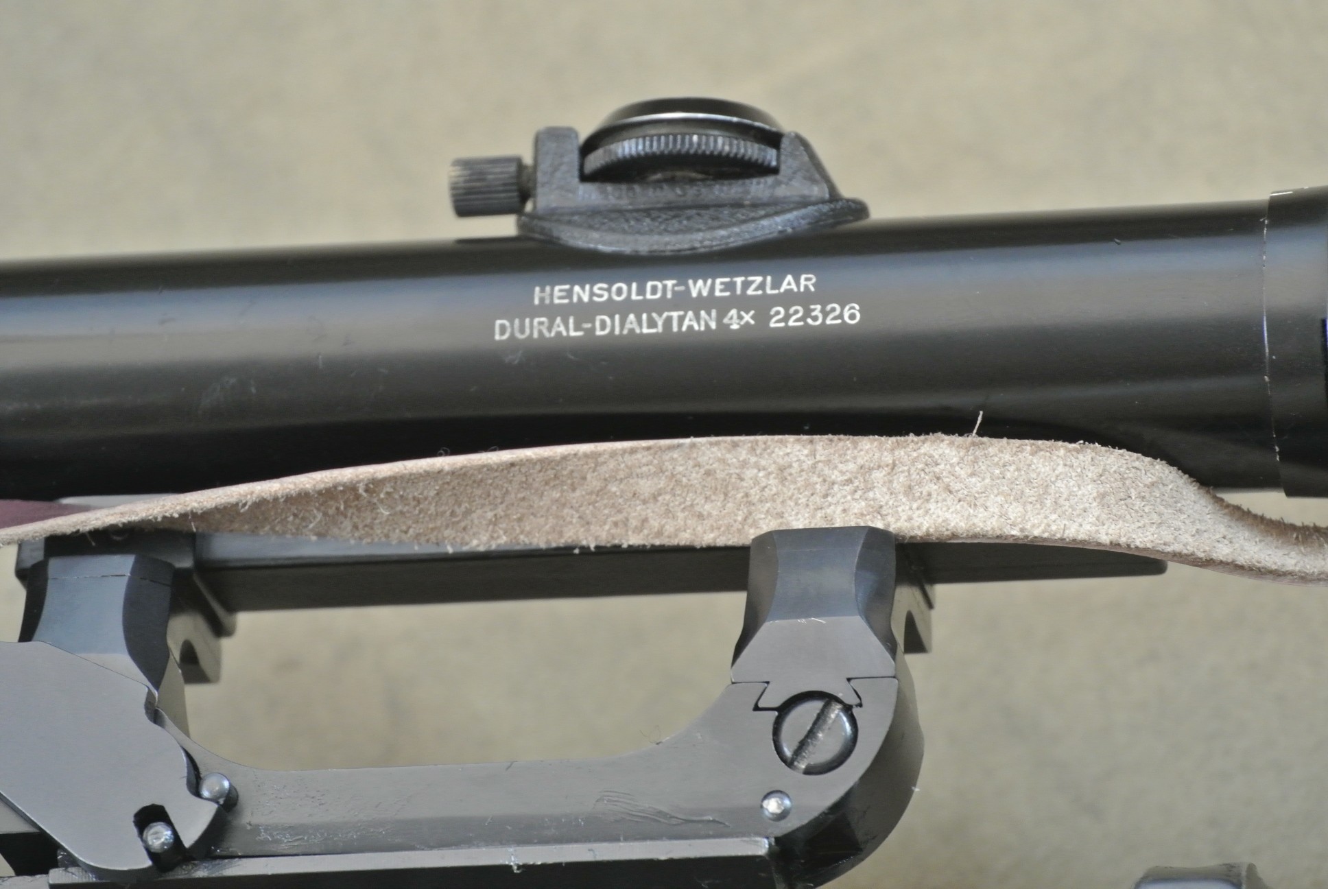 Die restlichen Teile sind ohne Nummern. ZF Hensoldt Dural Dialyt 4 x, Absehen 1 auf Seitenmontage. Montage und Riemen sind Neu-Fertigungen.