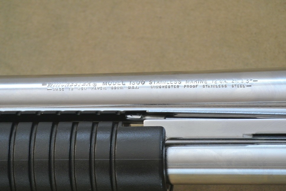 !! VERKAUFT !! Vorderschaftrepetierflinte, Winchester Mod. 1300 Stainless Marine, Kal. 12/76.