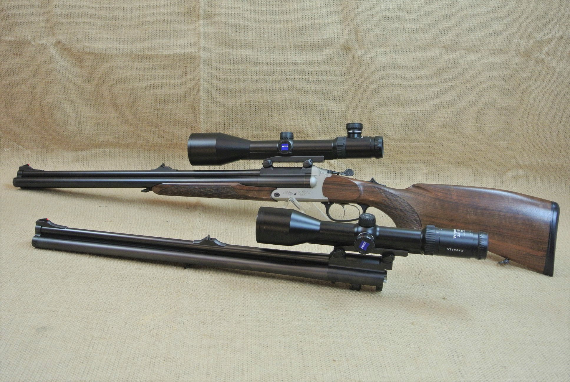 Laufbündel 1 = 2 x 8x57IRS u. 20/76 Magnum, mit ZF Zeiss Varipoint M 2,5-10 x 50 T, Abs. O (Unipoint) auf Blaser-Sattelmontage.