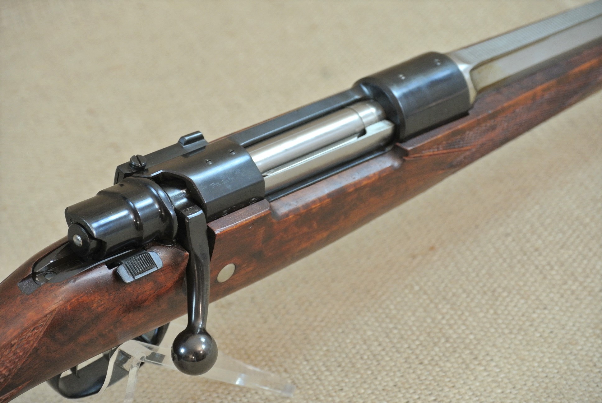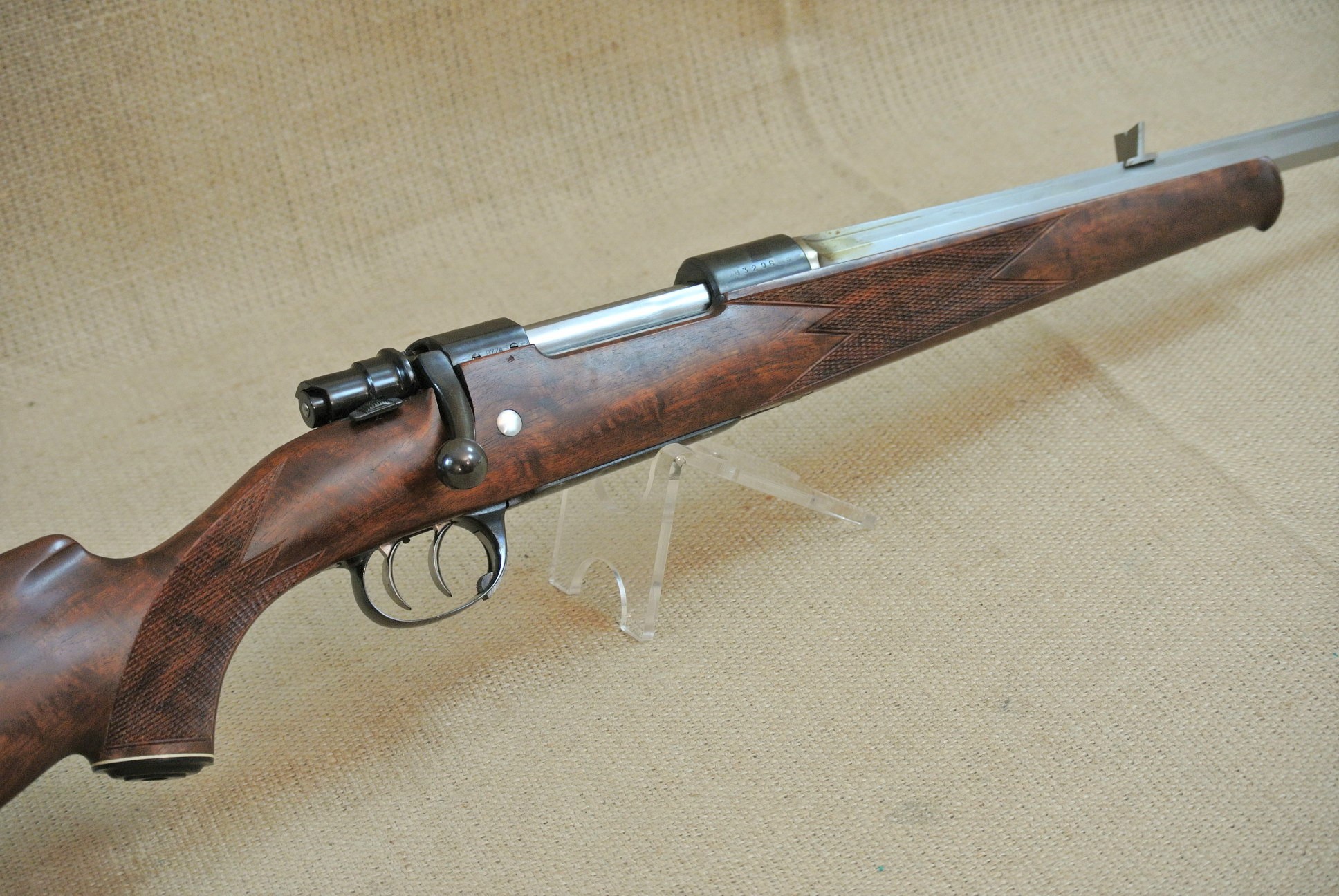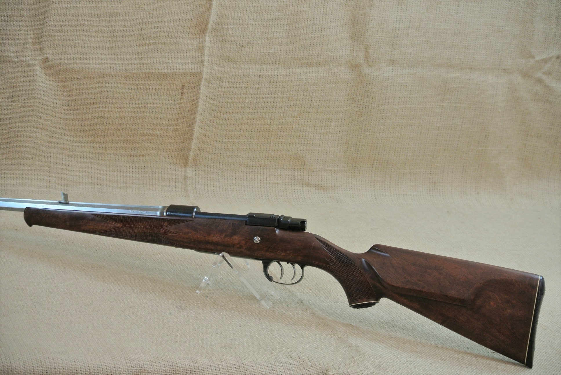 Büchsenmacherarbeit aus Ferlach. Schöner Achtkantlauf 66 cm. Die Büchse ist schon beschossen. Der Lauf ist noch weissfertig. Sie können die Waffe noch nach Ihren Vorstellungen optisch fertig stellen lassen .