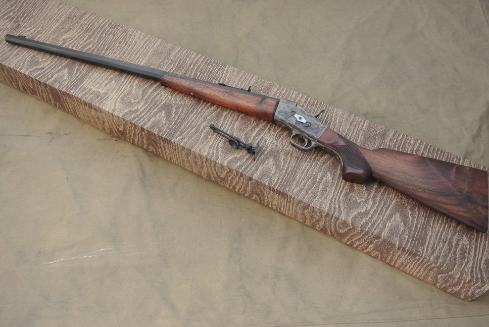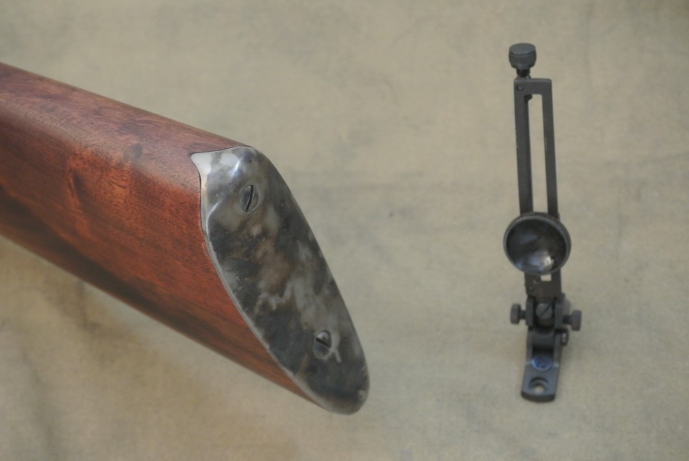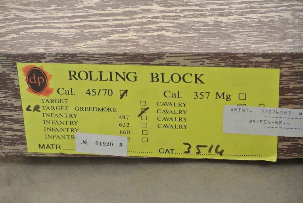 !! VERKAUFT !! Pedersoli Rolling Block Greedmore, Kal. .45-70, mit Diopter in orig. Verpackung.